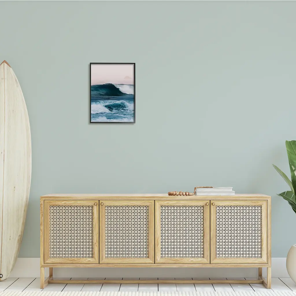 Stupell Crashing Surf Waves Ocean Beach Scene Distant Cliffs Framed Wall Art - 16 X 20 - Black