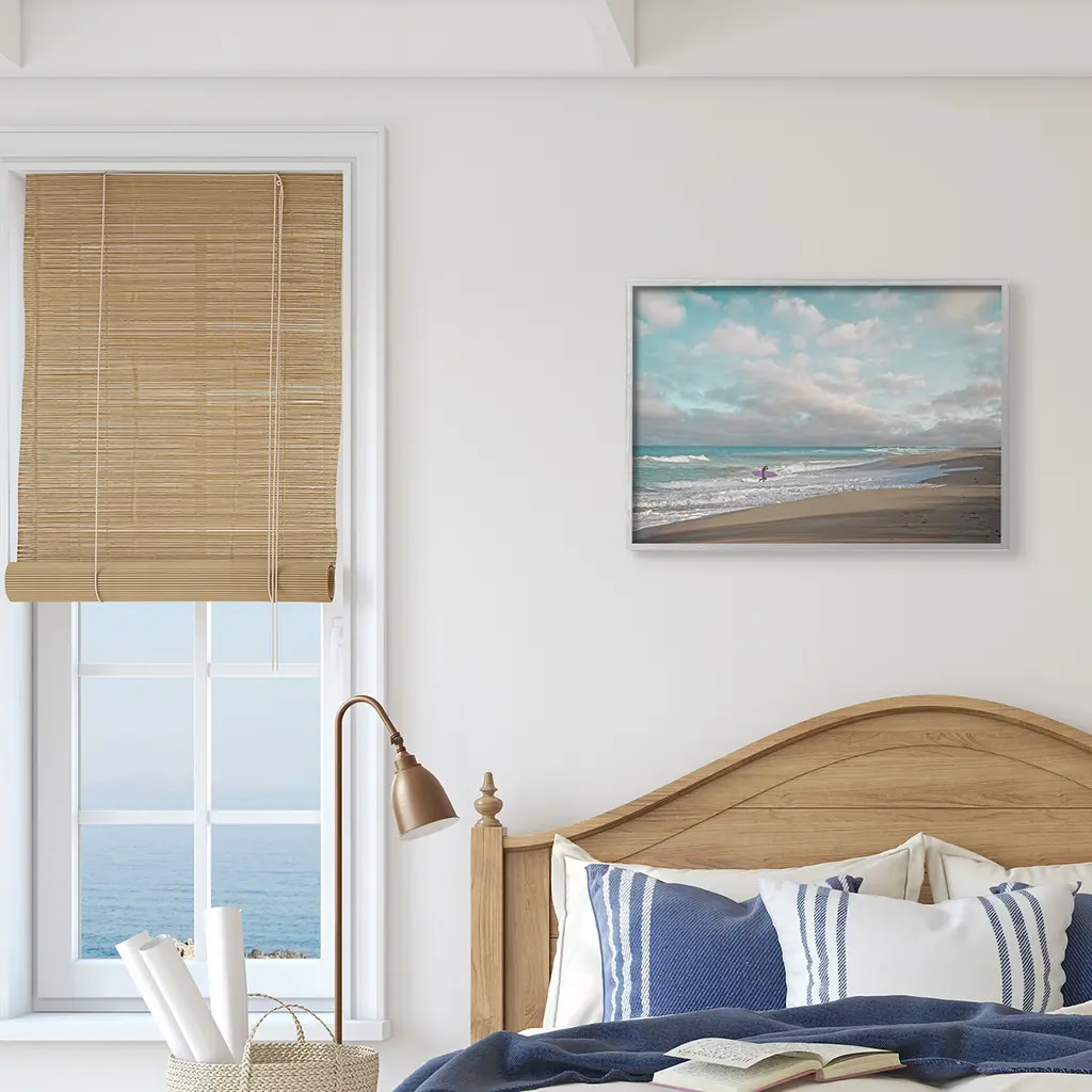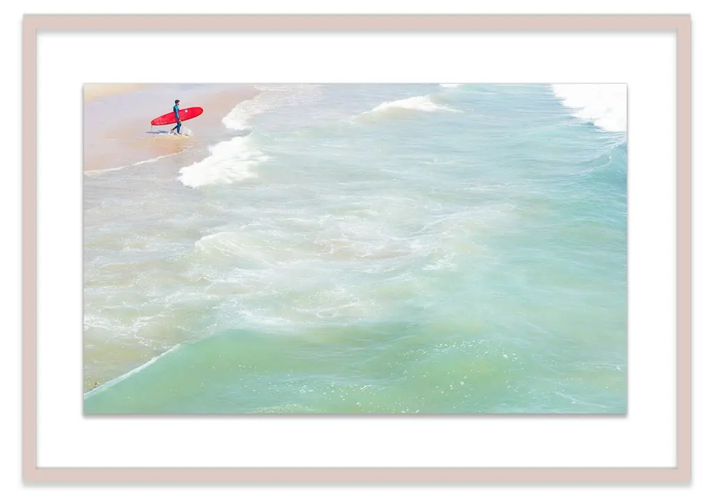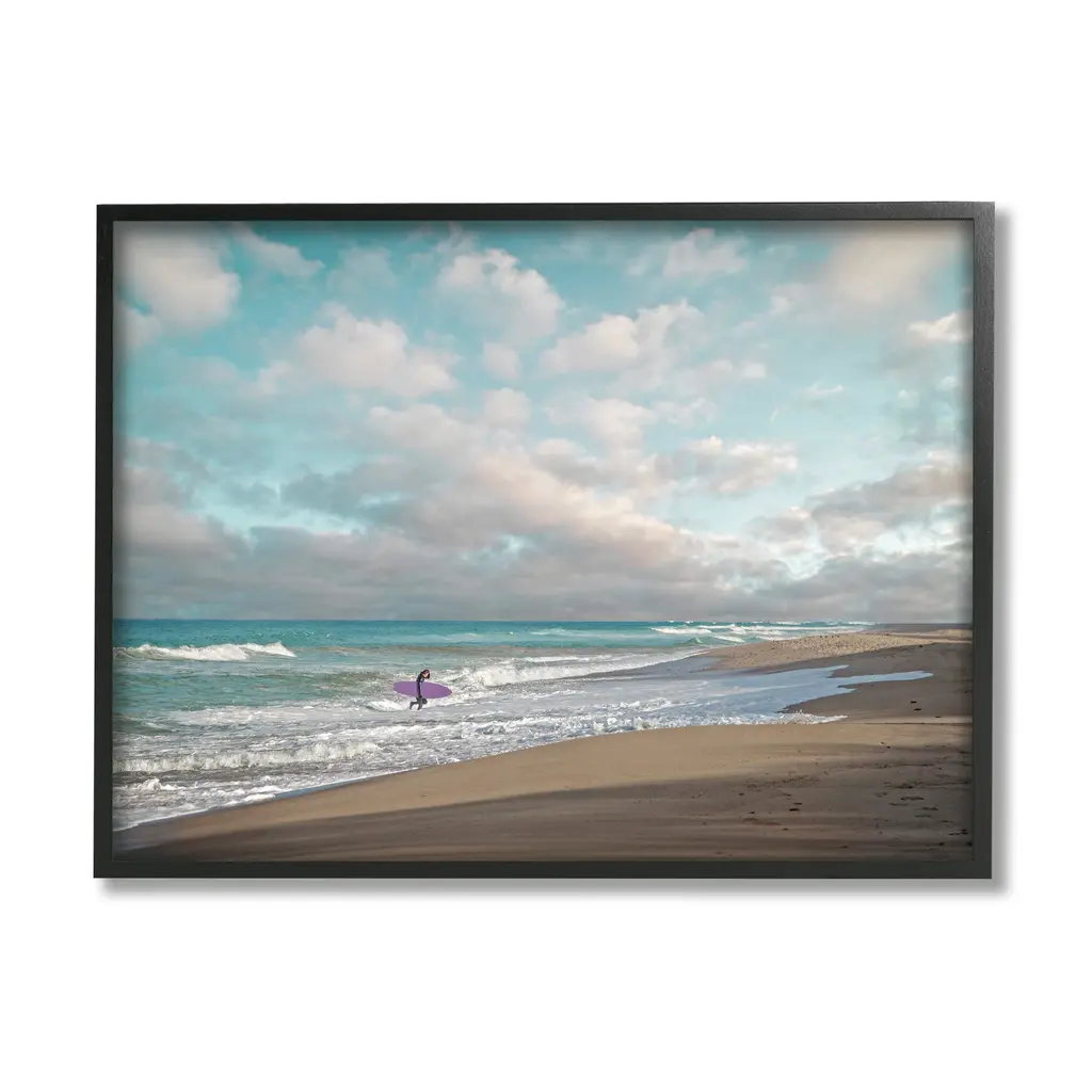 Stupell Crashing Waves On Beach Surfer Purple Board Framed Wall Art - Blue - 16 X 20 - Grey