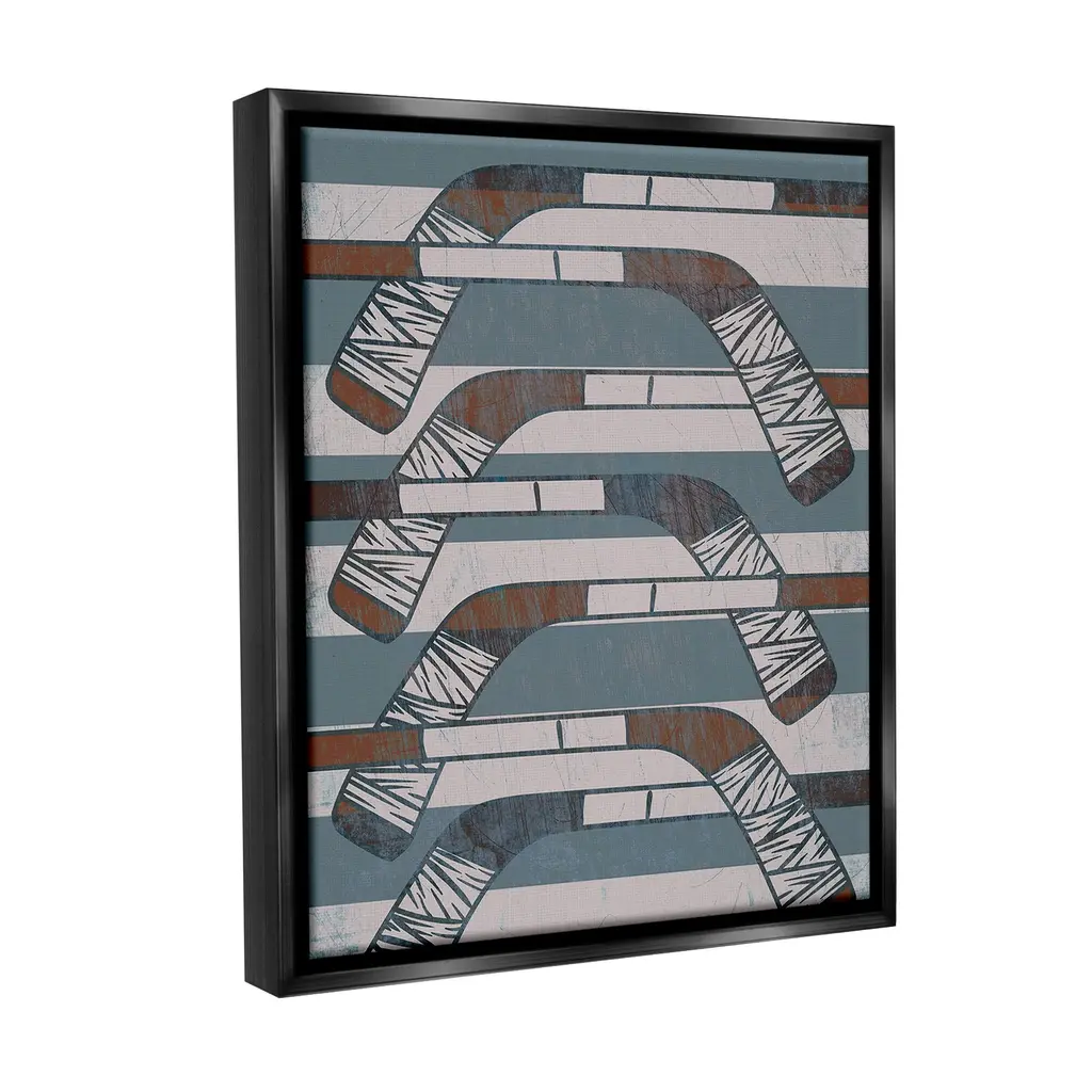 Elevate your home or office to the next level with Stupell Framed Floating Canvas Wall Art. Our premium hand-stretched canvas is mounted securely into a sturdy lightweight frame. The museum-style gap between the wrapped canvas and the box frame gives the illusion of floating artwork. Stupell Wall Art is made in the USA.Features: Dimensions: 17 x 1.7 x 21 Frame, 16 x 1.5 x 20 Canvas ArtFloating Frame Canvas Products are available in sizes 17"x21" and 25"x31". All Floating Frame Canvas Products have a 1.7" Depth.Wall Art is Ready to Hang with Hardware Free Hanging. No Installation required. For Easy Set Up Lean or Layer Artwork on Shelf or Against Wall. Artwork is Permently Fixed into the Frame.Our elevated 1.7" Thick Floating Frame is the perfect complement to our canvas style Wall Art. We use only the highest quality inks in house with industry leading printing solutions. Canvas is hand stretched over a durable wood foundation and then mounted securly into a Modern Box Frame. Made in the USA.Artwork Relates To: Sport, Hockey, Hockey Stick, Equipment, Shape, Pattern, AbstractDesign by Lil' Rue