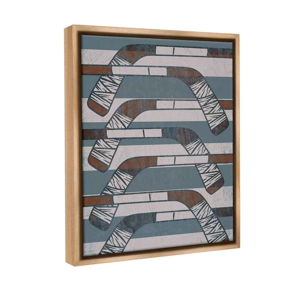 Elevate your home or office to the next level with Stupell Framed Floating Canvas Wall Art. Our premium hand-stretched canvas is mounted securely into a sturdy lightweight frame. The museum-style gap between the wrapped canvas and the box frame gives the illusion of floating artwork. Stupell Wall Art is made in the USA.Features: Dimensions: 17 x 1.7 x 21 Frame, 16 x 1.5 x 20 Canvas ArtFloating Frame Canvas Products are available in sizes 17"x21" and 25"x31". All Floating Frame Canvas Products have a 1.7" Depth.Wall Art is Ready to Hang with Hardware Free Hanging. No Installation required. For Easy Set Up Lean or Layer Artwork on Shelf or Against Wall. Artwork is Permently Fixed into the Frame.Our elevated 1.7" Thick Floating Frame is the perfect complement to our canvas style Wall Art. We use only the highest quality inks in house with industry leading printing solutions. Canvas is hand stretched over a durable wood foundation and then mounted securly into a Modern Box Frame. Made in the USA.Artwork Relates To: Sport, Hockey, Hockey Stick, Equipment, Shape, Pattern, AbstractDesign by Lil' Rue