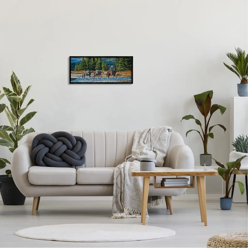 Stupell Crossing River Cowboy Landscape Framed Giclee Art By David Graham - 24 X 10 - Black
