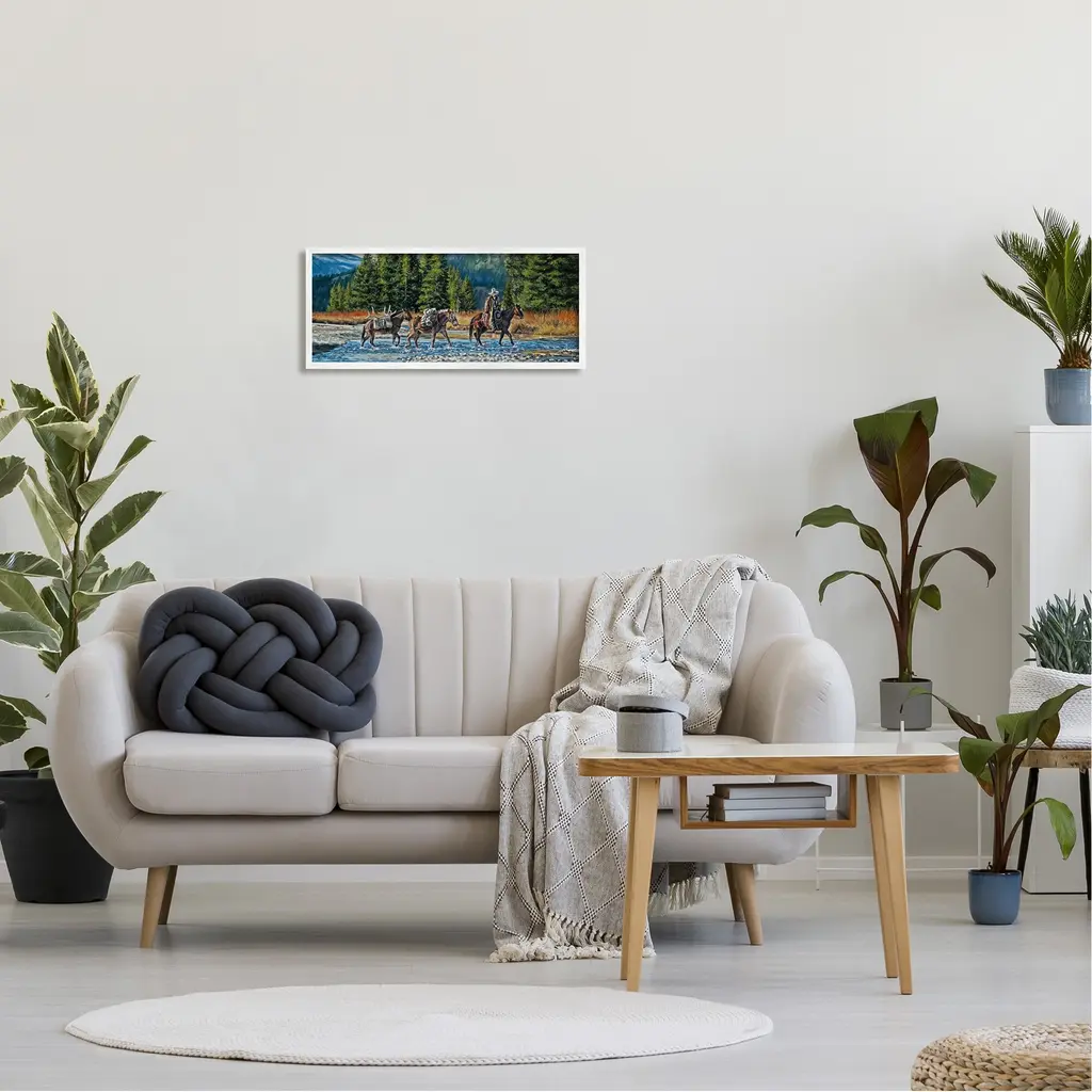 Stupell Crossing River Cowboy Landscape Framed Giclee Art By David Graham - 24 X 10 - White