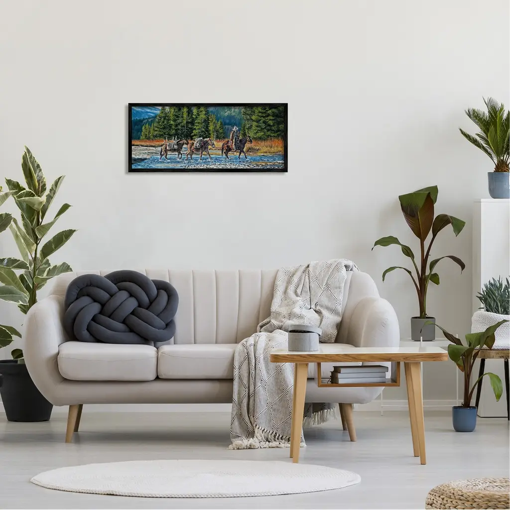 Stupell Crossing River Cowboy Landscape Framed Giclee Art By David Graham - 30 X 13 - Black
