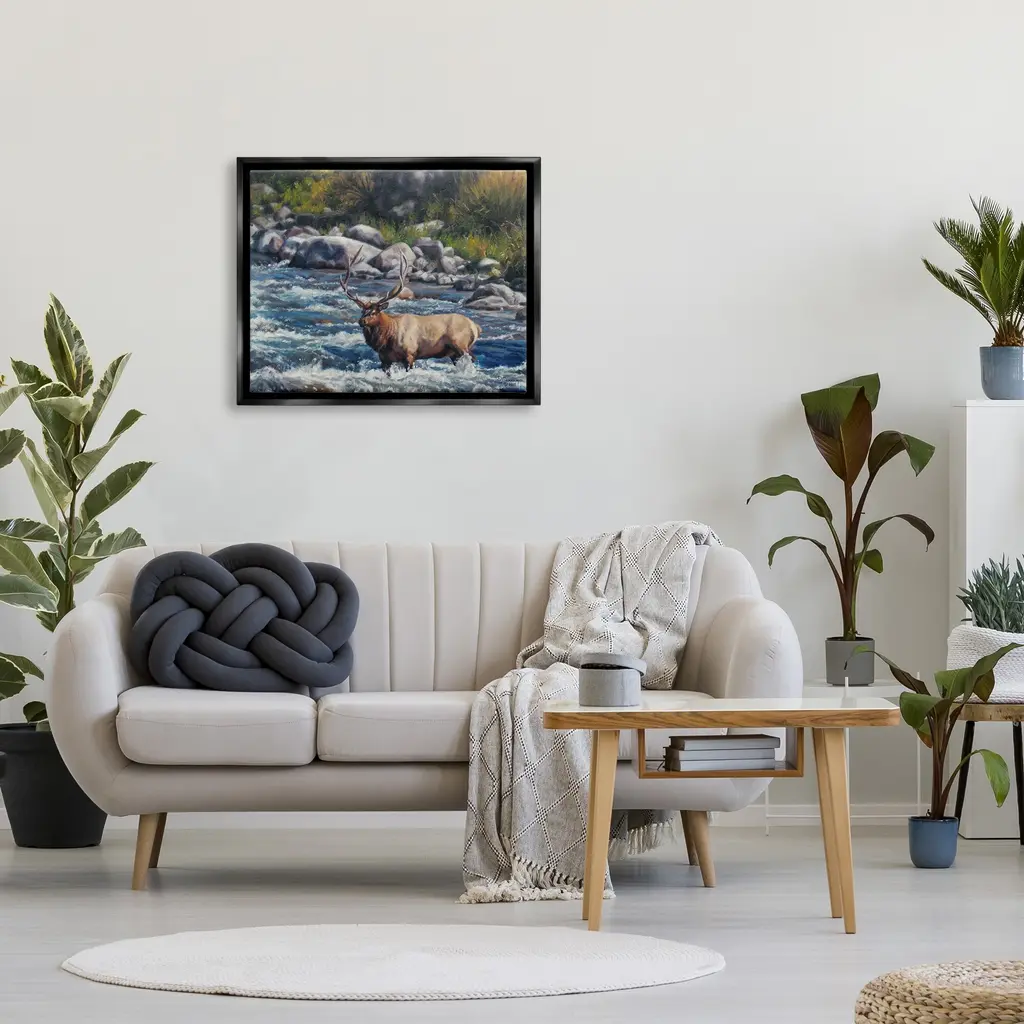 Elevate your home or office to the next level with Stupell Framed Floating Canvas Wall Art. Our premium hand-stretched canvas is mounted securely into a sturdy lightweight frame. The museum-style gap between the wrapped canvas and the box frame gives the illusion of floating artwork. Stupell Wall Art is made in the USA.Features: Dimensions: 21 x 1.7 x 17 Frame, 20 x 1.5 x 16 Canvas ArtFloating Frame Sizes Include Standard: 21 x 1.7 x 17 Oversized: 31 x 1.7 x 25Wall Art is Ready to Hang - No Installation or Hardware Needed. For Easy Set Up Lean or Layer Artwork on Shelf or Against Wall.Our elevated 1.7" Thick Floating Frame is the perfect complement to our canvas style Wall Art. We use only the highest quality inks in house with industry leading printing solutions. Canvas is hand stretched over a durable wood foundation and then mounted securly into a Modern Box Frame. Made in the USA.Artwork Relates To: Animal, Deer, Mammal, Wildlife, Elk, Nature, Mountain, WaterDesign by David Graham