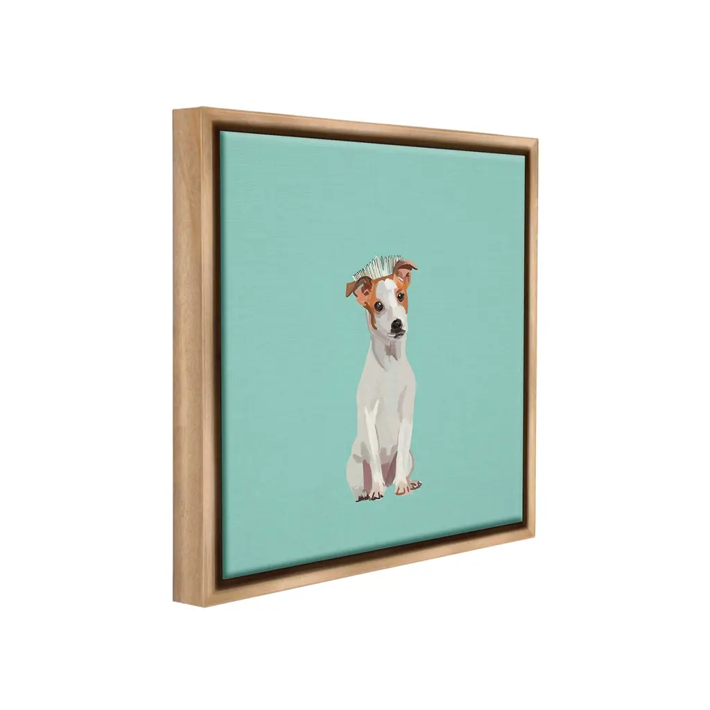 Elevate your home or office to the next level with Stupell Framed Floating Canvas Wall Art. Our premium hand-stretched canvas is mounted securely into a sturdy lightweight frame. The museum-style gap between the wrapped canvas and the box frame gives the illusion of floating artwork. Stupell Wall Art is made in the USA.Features: Dimensions: 18 x 1.7 x 18 Frame, 17 x 1.5 x 17 Canvas ArtFloating Frame Canvas Products are available in sizes 18"x18" and 25"x25". All Floating Frame Canvas Products have a 1.7" Depth.Wall Art is Ready to Hang with Hardware Free Hanging. No Installation required. For Easy Set Up Lean or Layer Artwork on Shelf or Against Wall. Artwork is Permently Fixed into the Frame.Our elevated 1.7" Thick Floating Frame is the perfect complement to our canvas style Wall Art. We use only the highest quality inks in house with industry leading printing solutions. Canvas is hand stretched over a durable wood foundation and then mounted securly into a Modern Box Frame. Made in the USA.Artwork Relates To: Animal, Canine, Dog, Mammal, Pet, Puppy, Tiara, Crown, PrincessDesign by Amelia Noyes