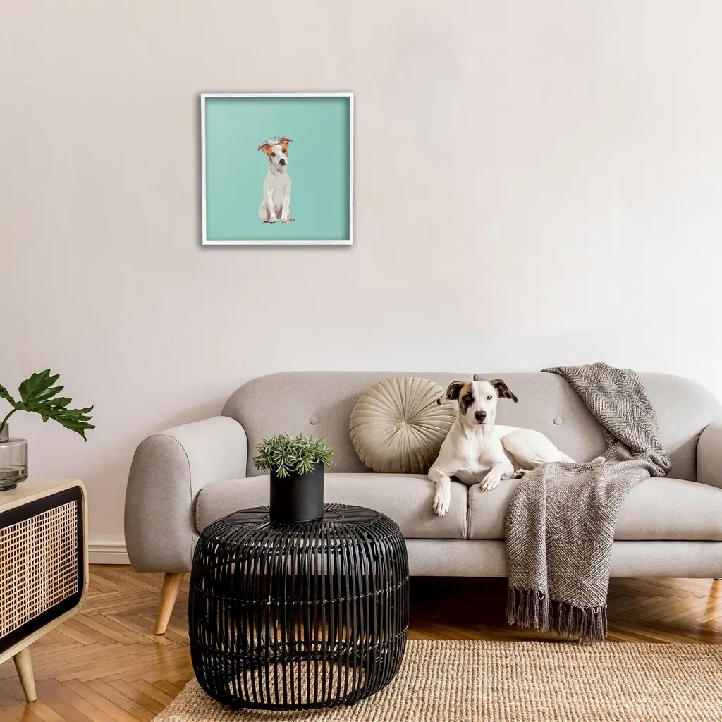 Add dimension to any room with our textured Framed Giclee Artwork. Our framed artwork is securely mounted into a 1.5-inch thick wood grain frame and ready to hang. Frames are available in three alluring styles: black, gray farmhouse and white. In addition, you should check out our oversized options if you want a statement piece. Stupell Wall Art is made in the USA.Features: Dimensions: 12 x 1.5 x 12 FramedFramed Giclee Product Sizes Include 12"x12", 17"x17", and 24"x24". Framed Giclee Products have a 1.5" Depth. Wall Art is Ready to Hang with Hardware Free Hanging. No installation required. For Easy Set Up Lean or Layer Artwork on Shelf or Against Wall.Our giclée prints are carefully mounted on a durable MDF backing, and then perfectly finished in a 1.5 inch thick woodgrain frame. Mounted frame colors include black, gray farmhouse and white. Made In USA.Artwork Relates To: Animal, Canine, Dog, Mammal, Pet, Puppy, Tiara, Crown, PrincessDesign by Amelia Noyes