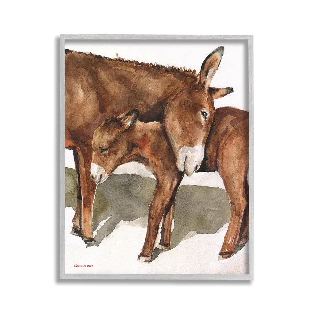 Stupell Cuddling Donkey & Foal Framed Floater Canvas Wall Art Design By Georgedyachenkoart - 25 X 31 - Grey