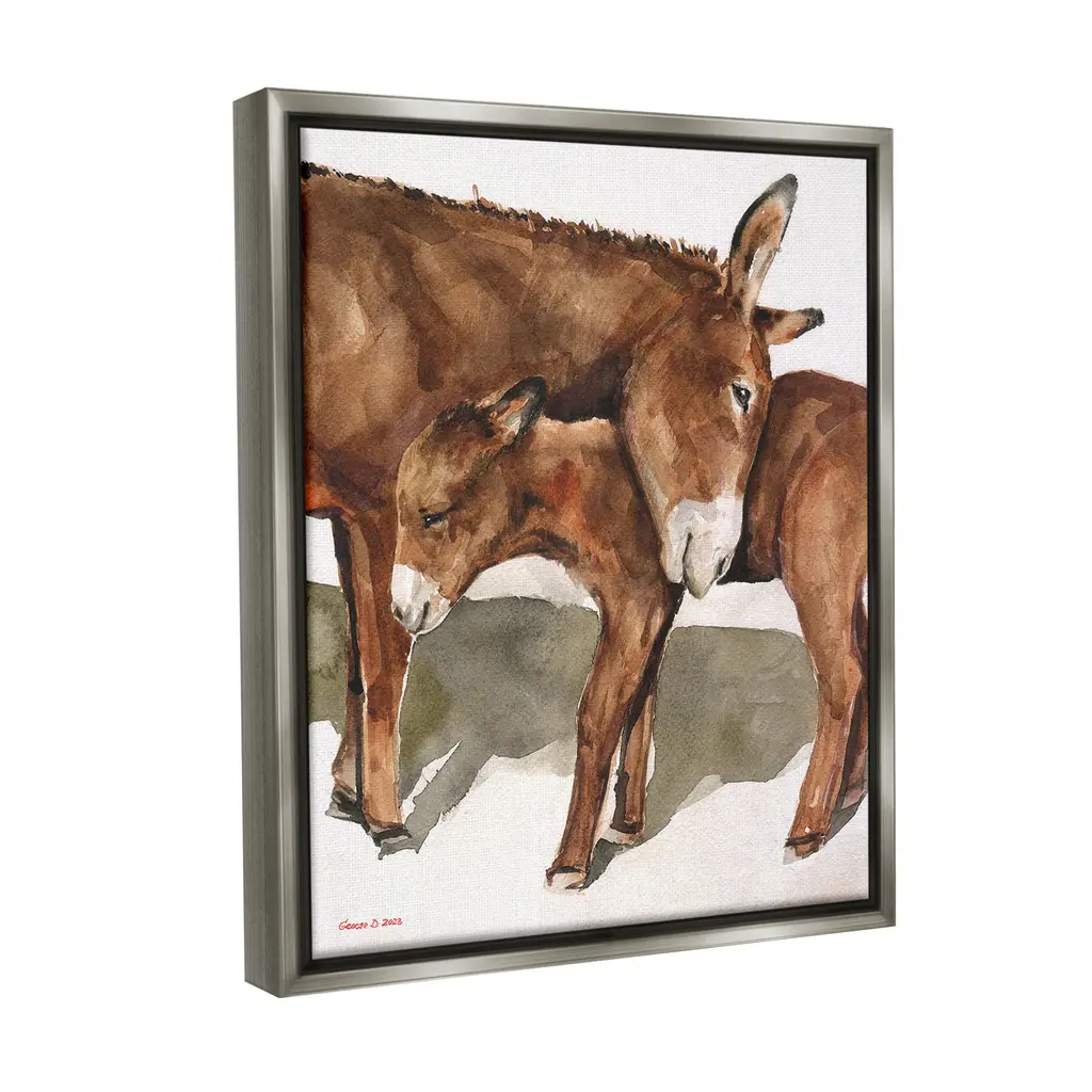 Elevate your home or office to the next level with Stupell Framed Floating Canvas Wall Art. Our premium hand-stretched canvas is mounted securely into a sturdy lightweight frame. The museum-style gap between the wrapped canvas and the box frame gives the illusion of floating artwork. Stupell Wall Art is made in the USA.Features: Dimensions: 17 x 1.7 x 21 Frame, 16 x 1.5 x 20 Canvas ArtFloating Frame Canvas Products are available in sizes 17"x21" and 25"x31". All Floating Frame Canvas Products have a 1.7" Depth.Wall Art is Ready to Hang with Hardware Free Hanging. No Installation required. For Easy Set Up Lean or Layer Artwork on Shelf or Against Wall. Artwork is Permently Fixed into the Frame.Our elevated 1.7" Thick Floating Frame is the perfect complement to our canvas style Wall Art. We use only the highest quality inks in house with industry leading printing solutions. Canvas is hand stretched over a durable wood foundation and then mounted securly into a Modern Box Frame. Made in the USA.Artwork Relates To: Animal, Mammal, Donkey, Wildlife, Farm, Country, PaintingDesign by GeorgeDyachenkoArt