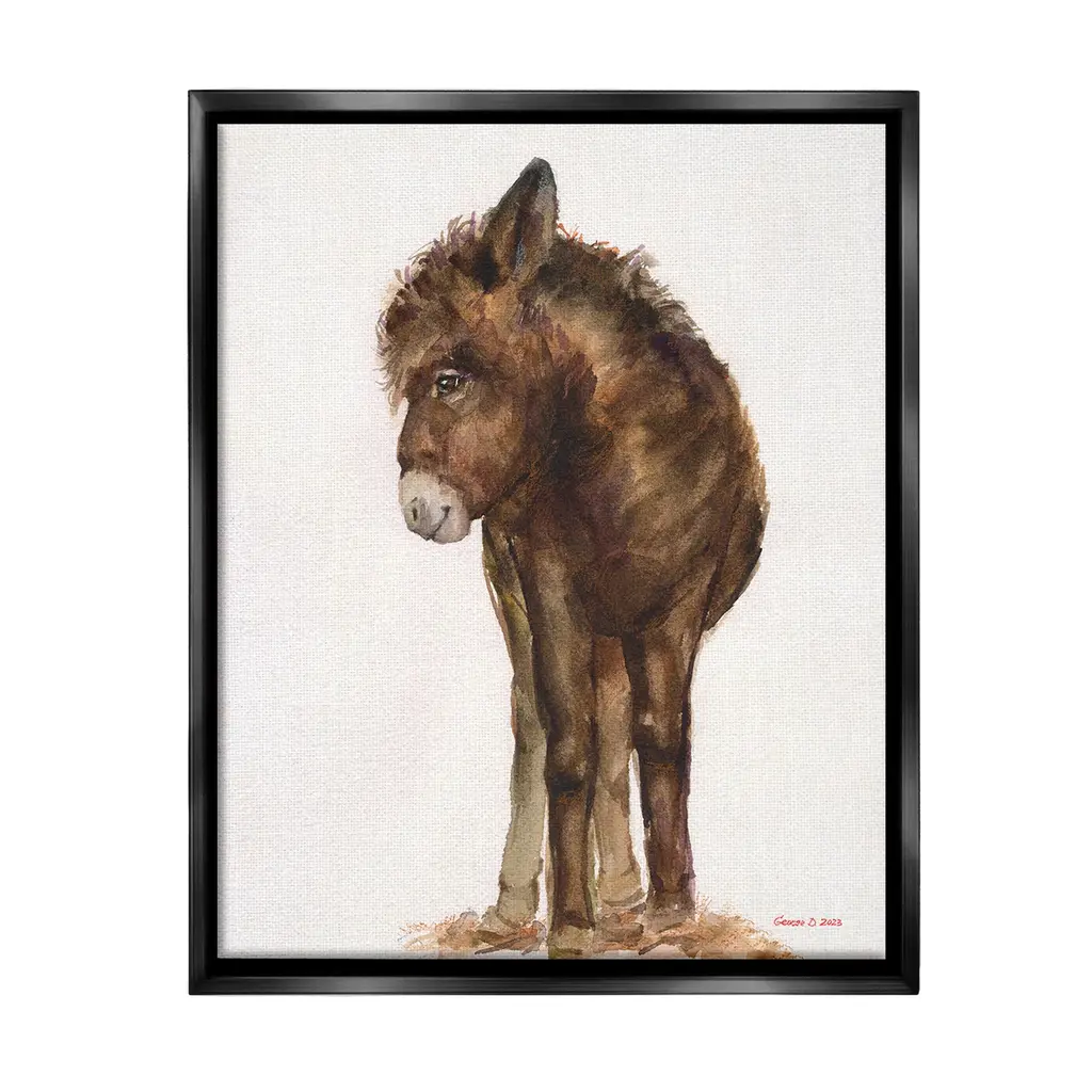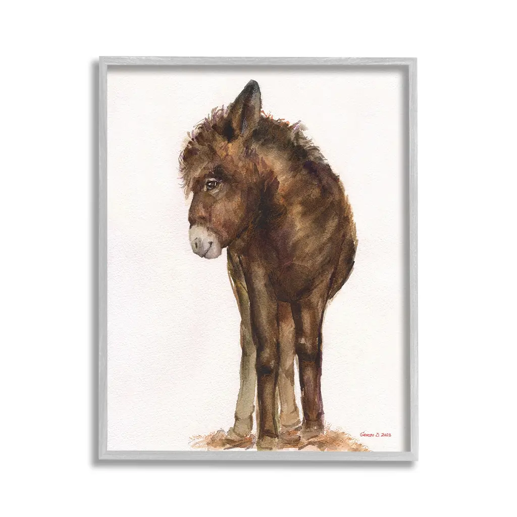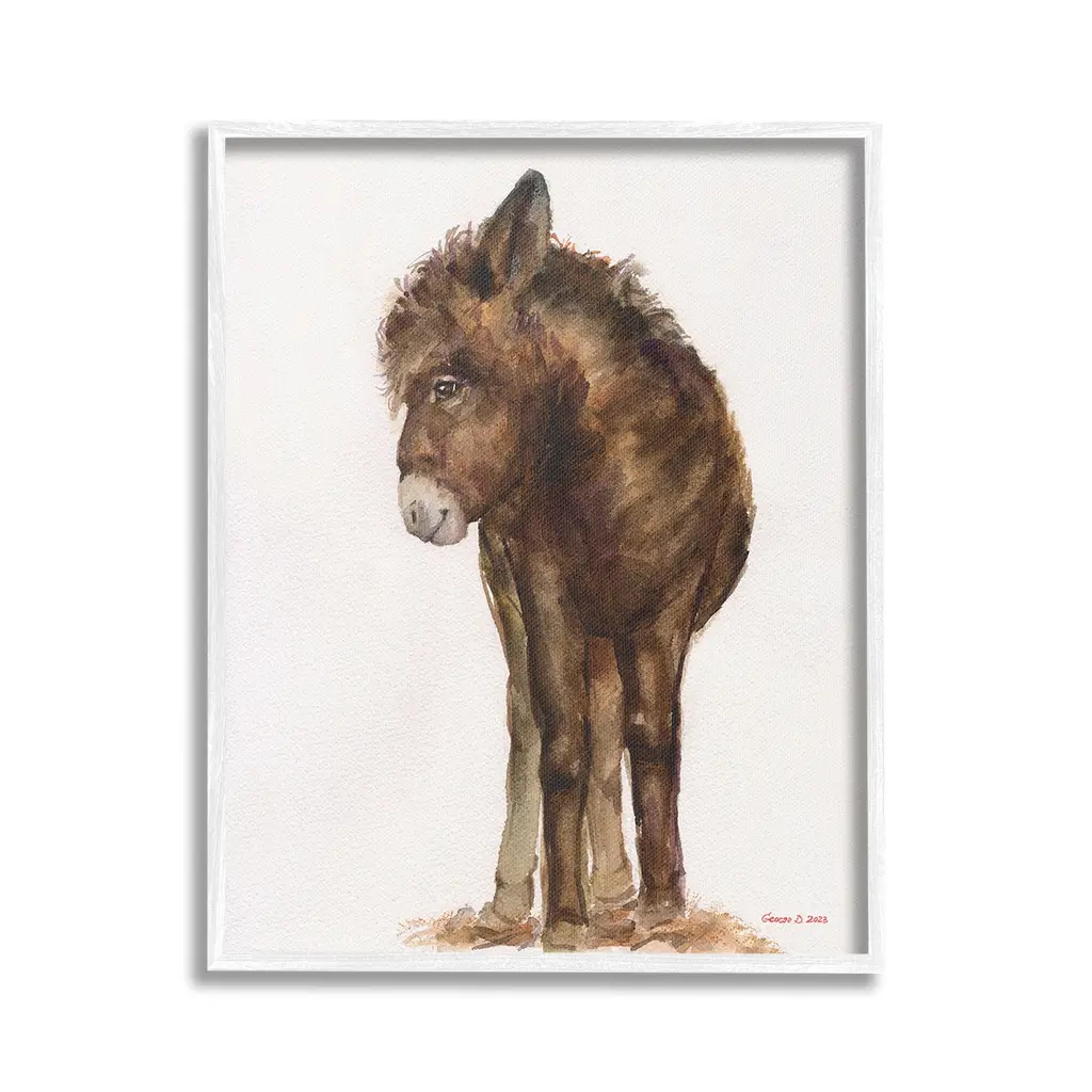 Add dimension to any room with our textured Framed Giclee Artwork. Our framed artwork is securely mounted into a 1.5-inch thick wood grain frame and ready to hang. Frames are available in three alluring styles: black, gray farmhouse and white. In addition, you should check out our oversized options if you want a statement piece. Stupell Wall Art is made in the USA.Features: Dimensions: 11 x 1.5 x 14 FramedFramed Giclee Products are available in the sizes 11"x14", 16"x20" or 24"x30". All Framed Giclee Products have a 1.5" Depth. Wall Art is Ready to Hang with Hardware Free Hanging. No installation required. For Easy Set Up Lean or Layer Artwork on Shelf or Against Wall.Our giclée prints are carefully mounted on a durable MDF backing, and then perfectly finished in a 1.5 inch thick woodgrain frame. Mounted frame colors include black, gray farmhouse and white. Made In USA.Artwork Relates To: Animal, Mammal, Donkey, Wildlife, Farm, Country, PaintingDesign by GeorgeDyachenkoArt
