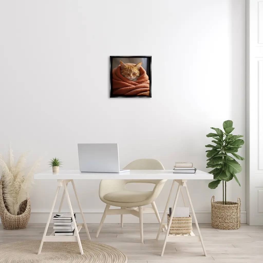 Elevate your home or office to the next level with Stupell Framed Floating Canvas Wall Art. Our premium hand-stretched canvas is mounted securely into a sturdy lightweight frame. The museum-style gap between the wrapped canvas and the box frame gives the illusion of floating artwork. Stupell Wall Art is made in the USA.Features: Dimensions: 18 x 1.7 x 18 Frame, 17 x 1.5 x 17 Canvas ArtFloating Frame Canvas Products are available in sizes 18"x18" and 25"x25". All Floating Frame Canvas Products have a 1.7" Depth.Wall Art is Ready to Hang with Hardware Free Hanging. No Installation required. For Easy Set Up Lean or Layer Artwork on Shelf or Against Wall. Artwork is Permently Fixed into the Frame.Our elevated 1.7" Thick Floating Frame is the perfect complement to our canvas style Wall Art. We use only the highest quality inks in house with industry leading printing solutions. Canvas is hand stretched over a durable wood foundation and then mounted securly into a Modern Box Frame. Made in the USA.Artwork Relates To: Blanket, Animal, Cat, Mammal, Pet, Cozy, SleepingDesign by RB