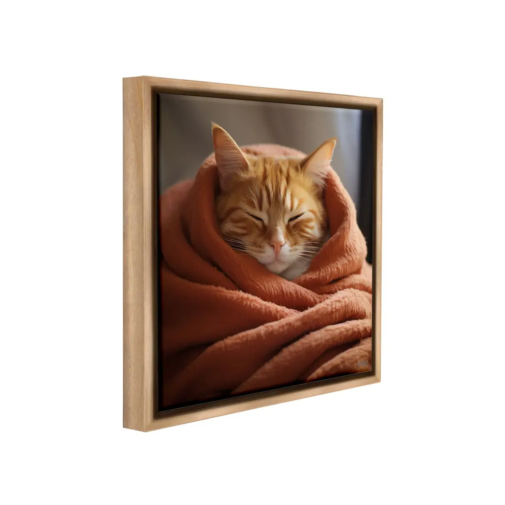 Elevate your home or office to the next level with Stupell Framed Floating Canvas Wall Art. Our premium hand-stretched canvas is mounted securely into a sturdy lightweight frame. The museum-style gap between the wrapped canvas and the box frame gives the illusion of floating artwork. Stupell Wall Art is made in the USA.Features: Dimensions: 18 x 1.7 x 18 Frame, 17 x 1.5 x 17 Canvas ArtFloating Frame Canvas Products are available in sizes 18"x18" and 25"x25". All Floating Frame Canvas Products have a 1.7" Depth.Wall Art is Ready to Hang with Hardware Free Hanging. No Installation required. For Easy Set Up Lean or Layer Artwork on Shelf or Against Wall. Artwork is Permently Fixed into the Frame.Our elevated 1.7" Thick Floating Frame is the perfect complement to our canvas style Wall Art. We use only the highest quality inks in house with industry leading printing solutions. Canvas is hand stretched over a durable wood foundation and then mounted securly into a Modern Box Frame. Made in the USA.Artwork Relates To: Blanket, Animal, Cat, Mammal, Pet, Cozy, SleepingDesign by RB