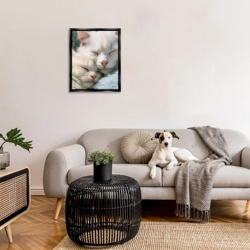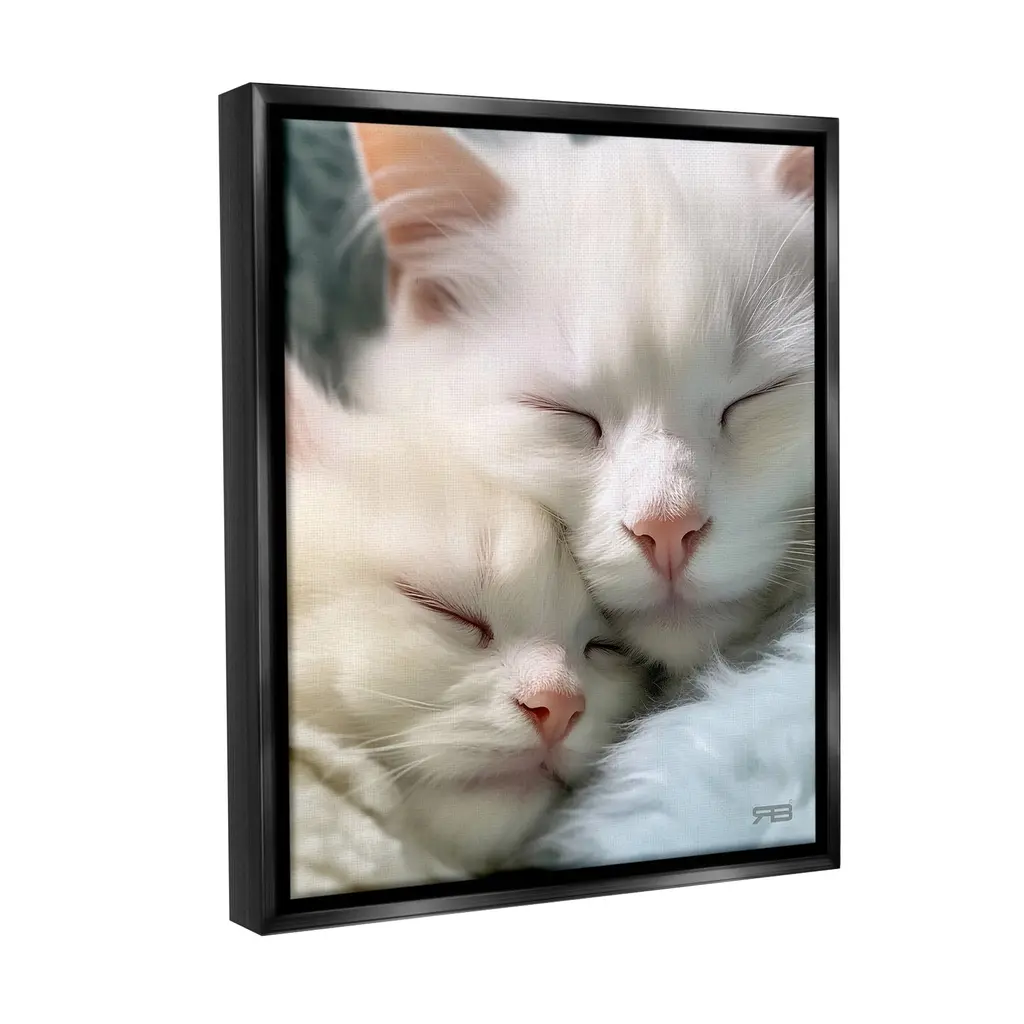 Stupell Cuddling White Cats Framed Floater Canvas Wall Art Design By Rb - 25 X 31 - Black