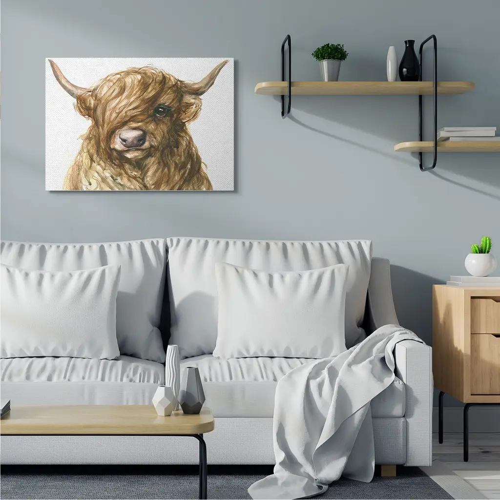 Stupell Curly Hair Highland Cow Baby Cattle Portrait Canvas Wall Art - 30 X 40