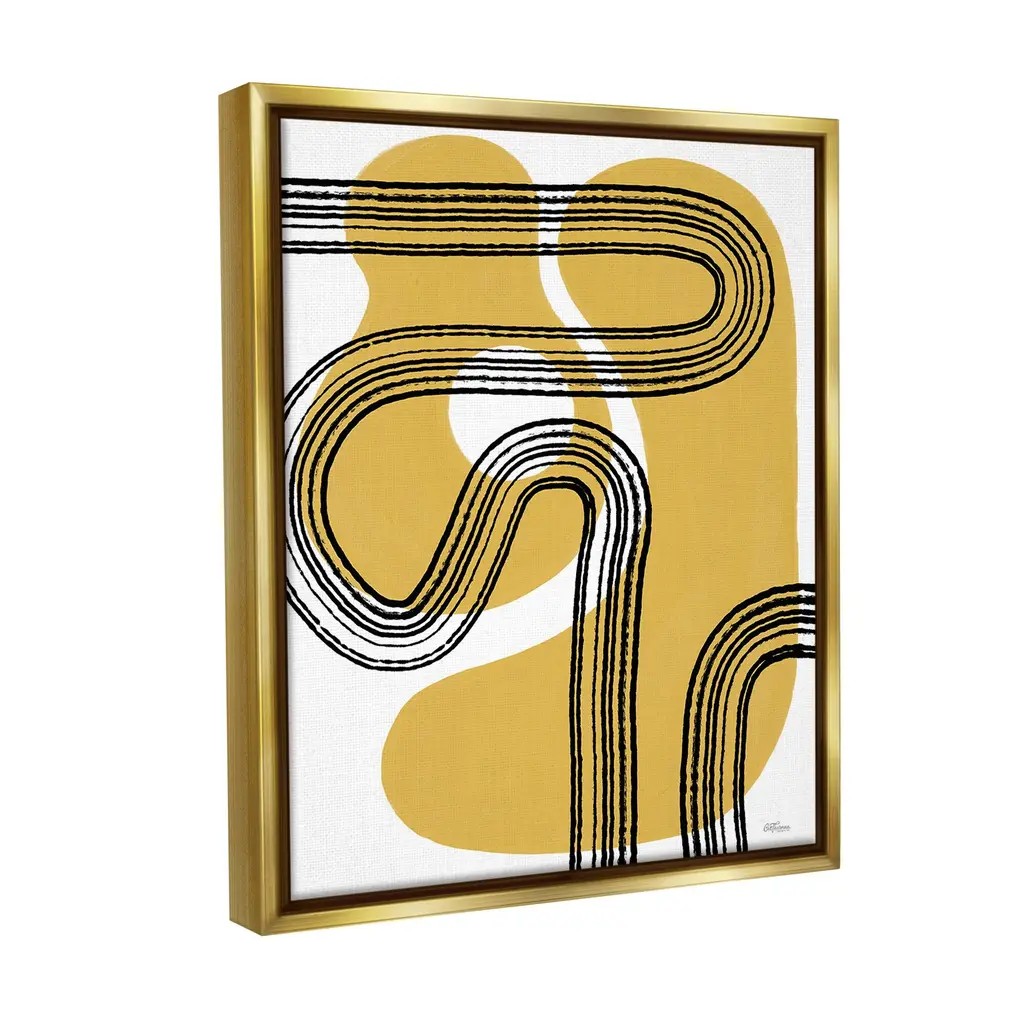 Stupell Curved Stripes On Shapes Framed Floater Canvas Wall Art Design By Cat Thurman Designs - 17 X 21 - Gold