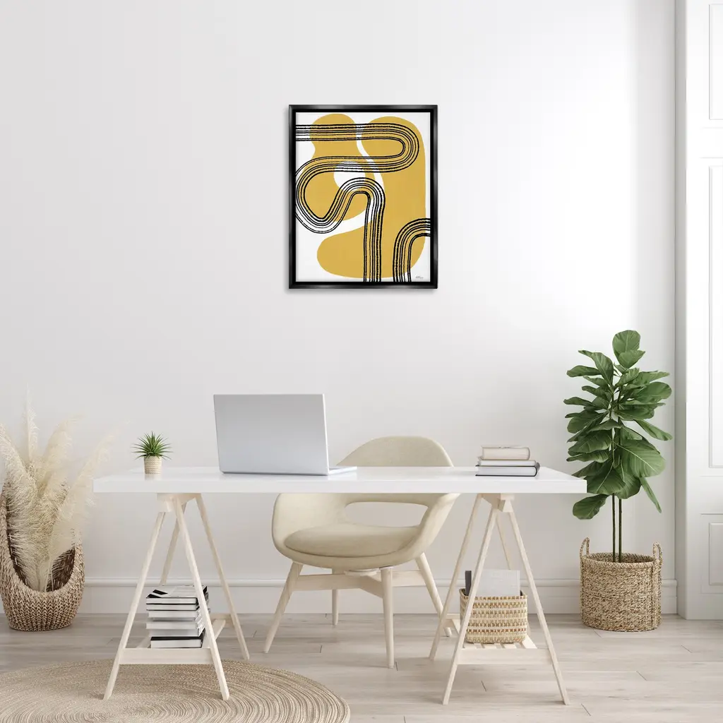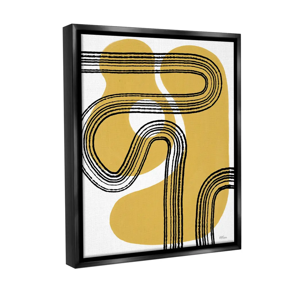 Stupell Curved Stripes On Shapes Framed Floater Canvas Wall Art Design By Cat Thurman Designs - 25 X 31 - Black