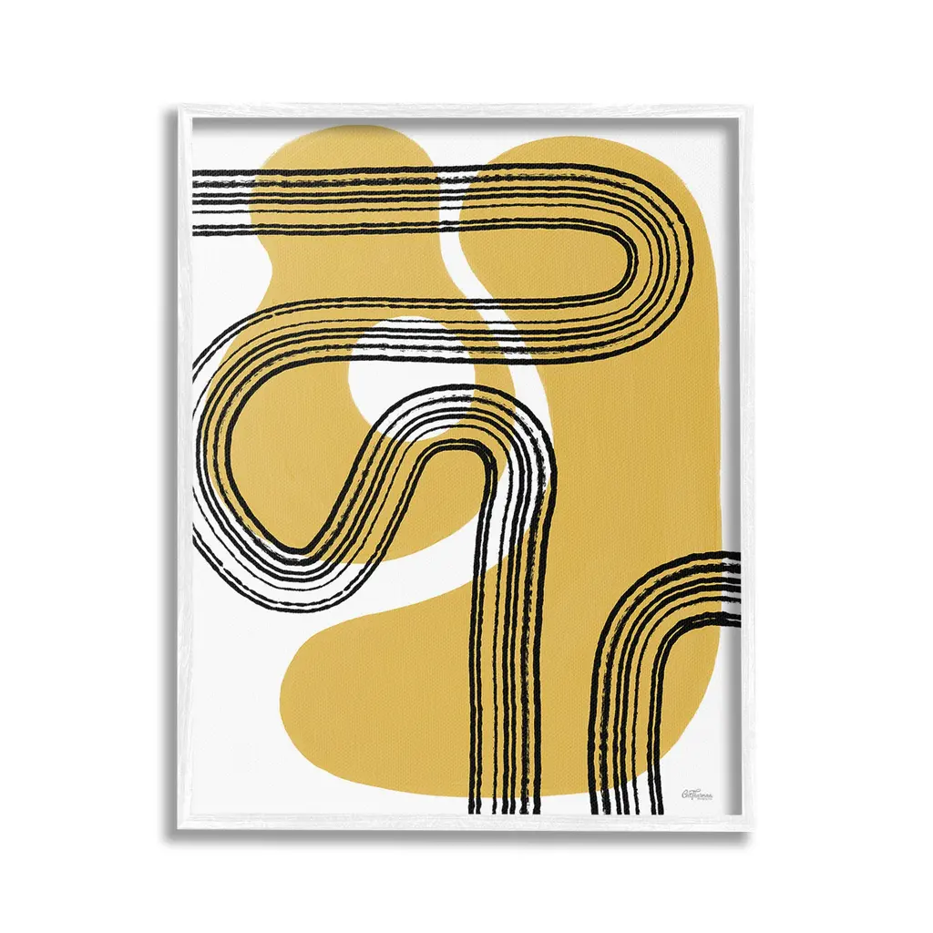 Stupell Curved Stripes On Shapes Framed Giclee Art Design By Cat Thurman Designs - 16 X 20 - Black