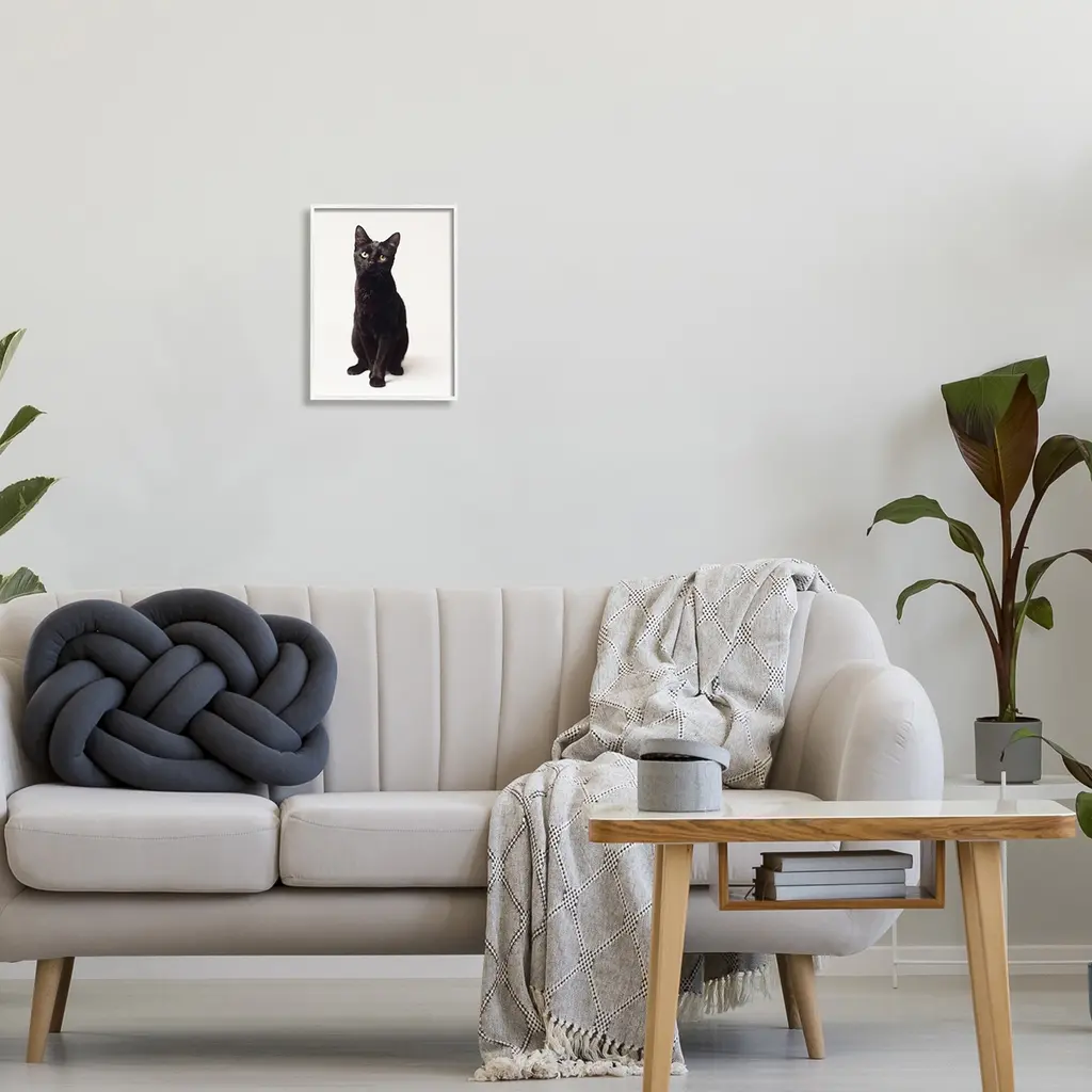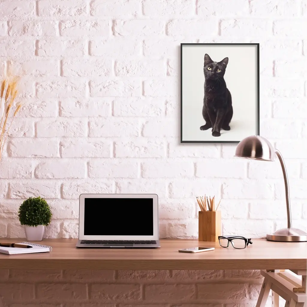 Stupell Cute Black Cat Expressive Eyes Pet Portrait Framed Giclee Texturized Art By Marika Moffit - 11 X 14 - Grey