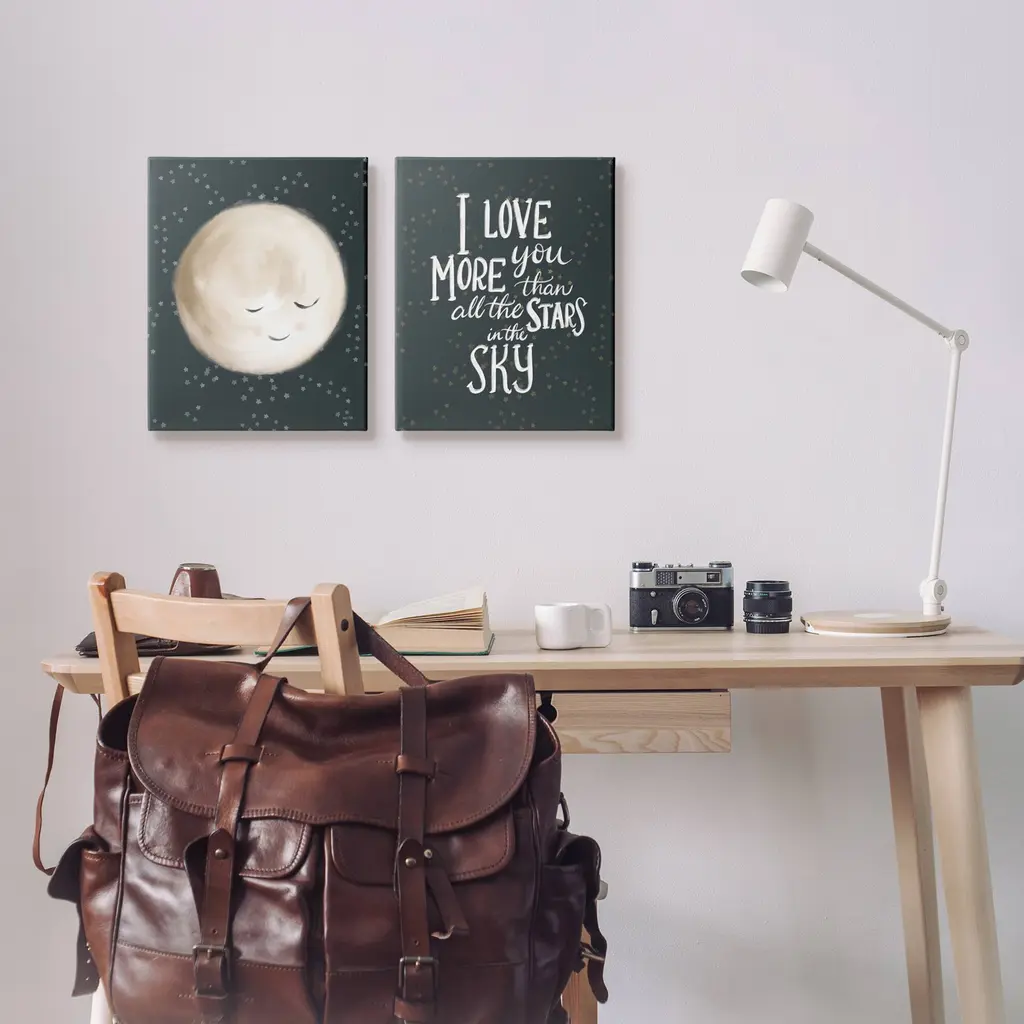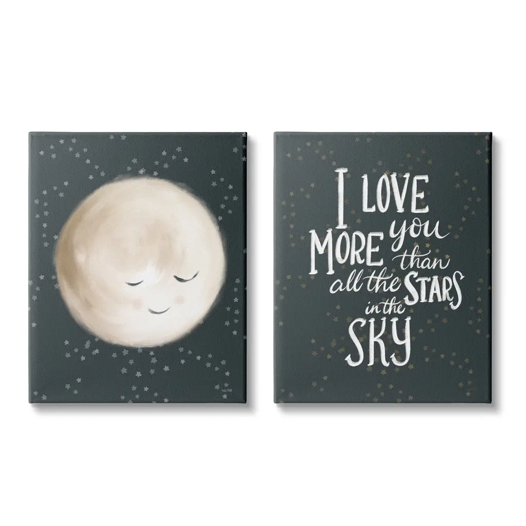 Stupell Cute Moon Starry Night Sky I Love You Phrase 2 Piece Canvas Wall Art - 16 X 20