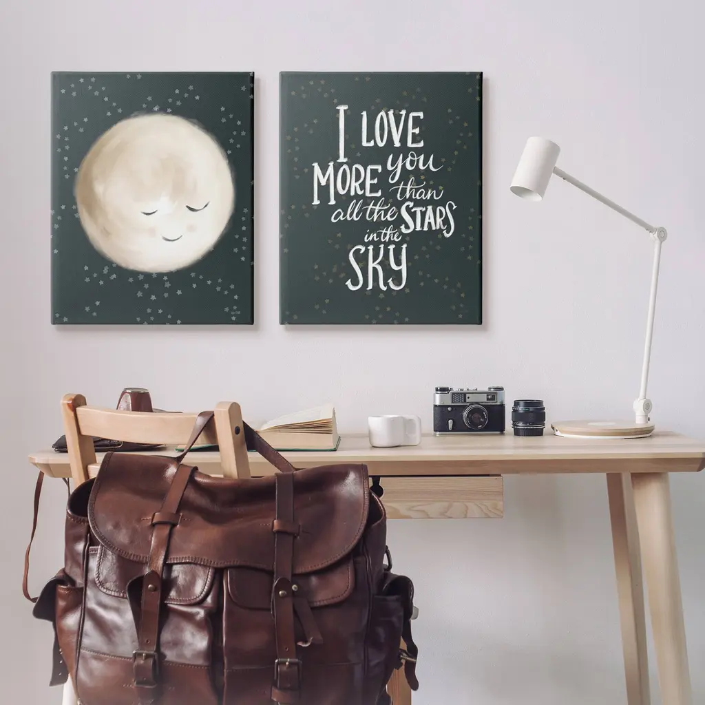 Stupell Cute Moon Starry Night Sky I Love You Phrase 2 Piece Canvas Wall Art - 24 X 30