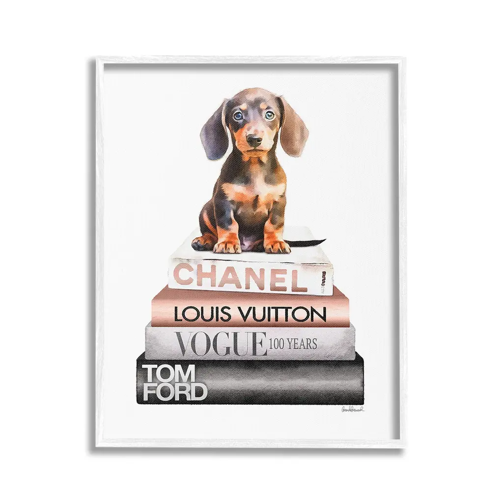 Add dimension to any room with our textured Framed Giclee Artwork. Our framed artwork is securely mounted into a 1.5-inch thick wood grain frame and ready to hang. Frames are available in three alluring styles: black, gray farmhouse and white. In addition, you should check out our oversized options if you want a statement piece. Stupell Wall Art is made in the USA.Features: Dimensions: 11 x 1.5 x 14 FramedFramed Giclee Products are available in the sizes 11"x14", 16"x20" or 24"x30". All Framed Giclee Products have a 1.5" Depth. Wall Art is Ready to Hang with Hardware Free Hanging. No installation required. For Easy Set Up Lean or Layer Artwork on Shelf or Against Wall.Our giclée prints are carefully mounted on a durable MDF backing, and then perfectly finished in a 1.5 inch thick woodgrain frame. Mounted frame colors include black, gray farmhouse and white. Made In USA.Artwork Relates To: Glam, Fashion, Bookstack, Books, Pet, Dog, Puppy, DachshundDesign by Amanda Greenwood