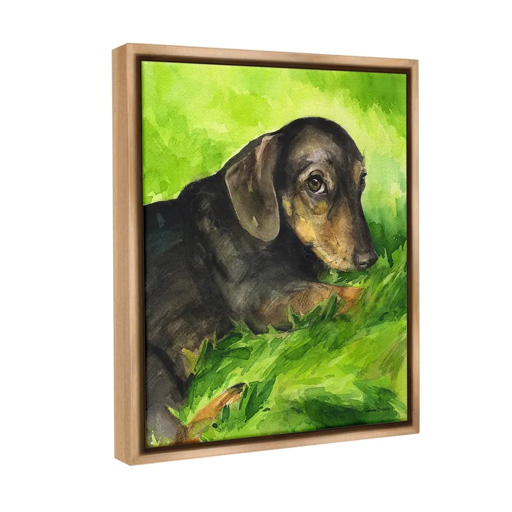 Elevate your home or office to the next level with Stupell Framed Floating Canvas Wall Art. Our premium hand-stretched canvas is mounted securely into a sturdy lightweight frame. The museum-style gap between the wrapped canvas and the box frame gives the illusion of floating artwork. Stupell Wall Art is made in the USA.Features: Dimensions: 17 x 1.7 x 21 Frame, 16 x 1.5 x 20 Canvas ArtFloating Frame Canvas Products are available in sizes 17"x21" and 25"x31". All Floating Frame Canvas Products have a 1.7" Depth.Wall Art is Ready to Hang with Hardware Free Hanging. No Installation required. For Easy Set Up Lean or Layer Artwork on Shelf or Against Wall. Artwork is Permently Fixed into the Frame.Our elevated 1.7" Thick Floating Frame is the perfect complement to our canvas style Wall Art. We use only the highest quality inks in house with industry leading printing solutions. Canvas is hand stretched over a durable wood foundation and then mounted securly into a Modern Box Frame. Made in the USA.Artwork Relates To: Animal, Canine, Dog, Pet, Portrait, Painting, Landscape, Grass, DachshundDesign by GeorgeDyachenkoArt