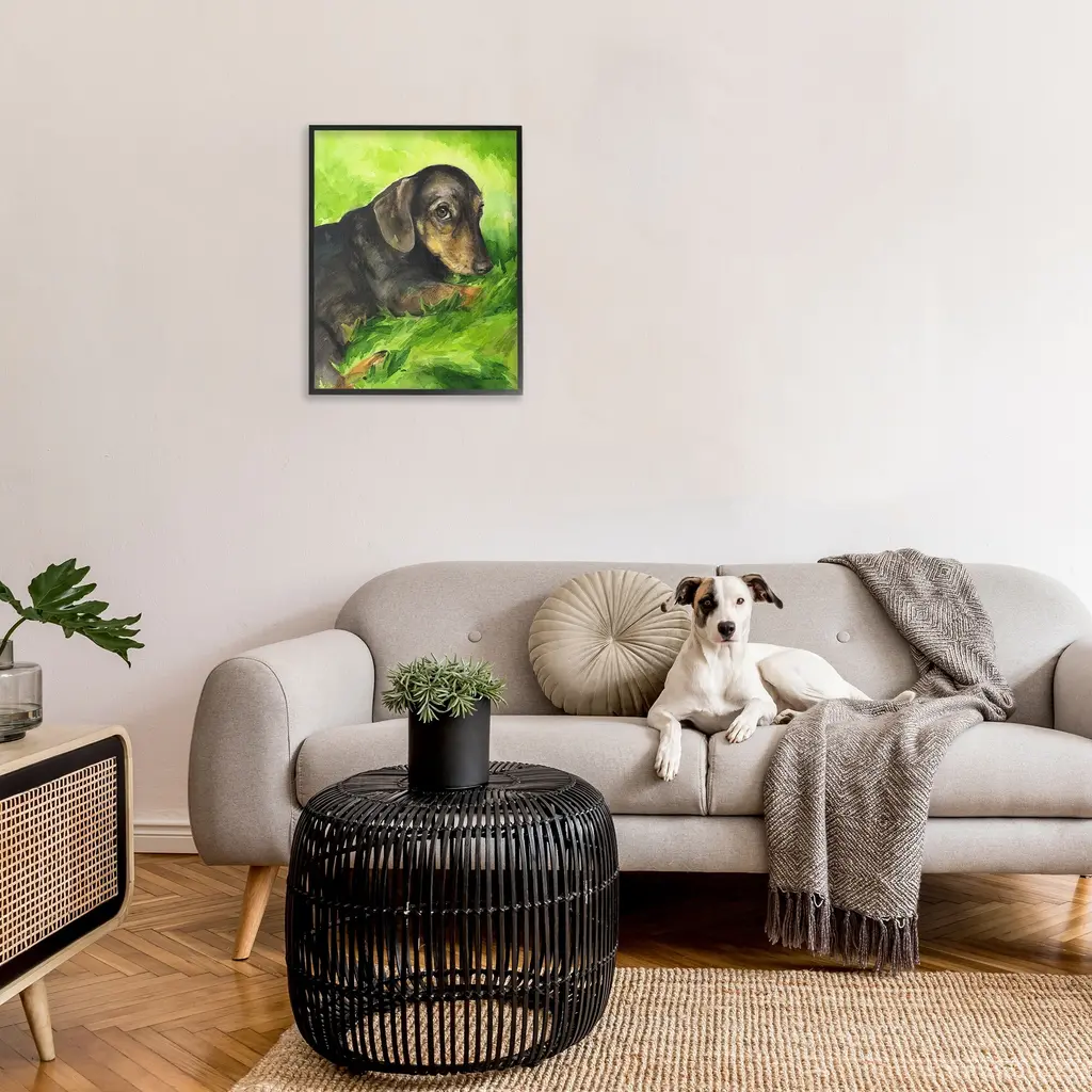 Add dimension to any room with our textured Framed Giclee Artwork. Our framed artwork is securely mounted into a 1.5-inch thick wood grain frame and ready to hang. Frames are available in three alluring styles: black, gray farmhouse and white. In addition, you should check out our oversized options if you want a statement piece. Stupell Wall Art is made in the USA.Features: Dimensions: 11 x 1.5 x 14 FramedFramed Giclee Products are available in the sizes 11"x14", 16"x20" or 24"x30". All Framed Giclee Products have a 1.5" Depth. Wall Art is Ready to Hang with Hardware Free Hanging. No installation required. For Easy Set Up Lean or Layer Artwork on Shelf or Against Wall.Our giclée prints are carefully mounted on a durable MDF backing, and then perfectly finished in a 1.5 inch thick woodgrain frame. Mounted frame colors include black, gray farmhouse and white. Made In USA.Artwork Relates To: Animal, Canine, Dog, Pet, Portrait, Painting, Landscape, Grass, DachshundDesign by GeorgeDyachenkoArt