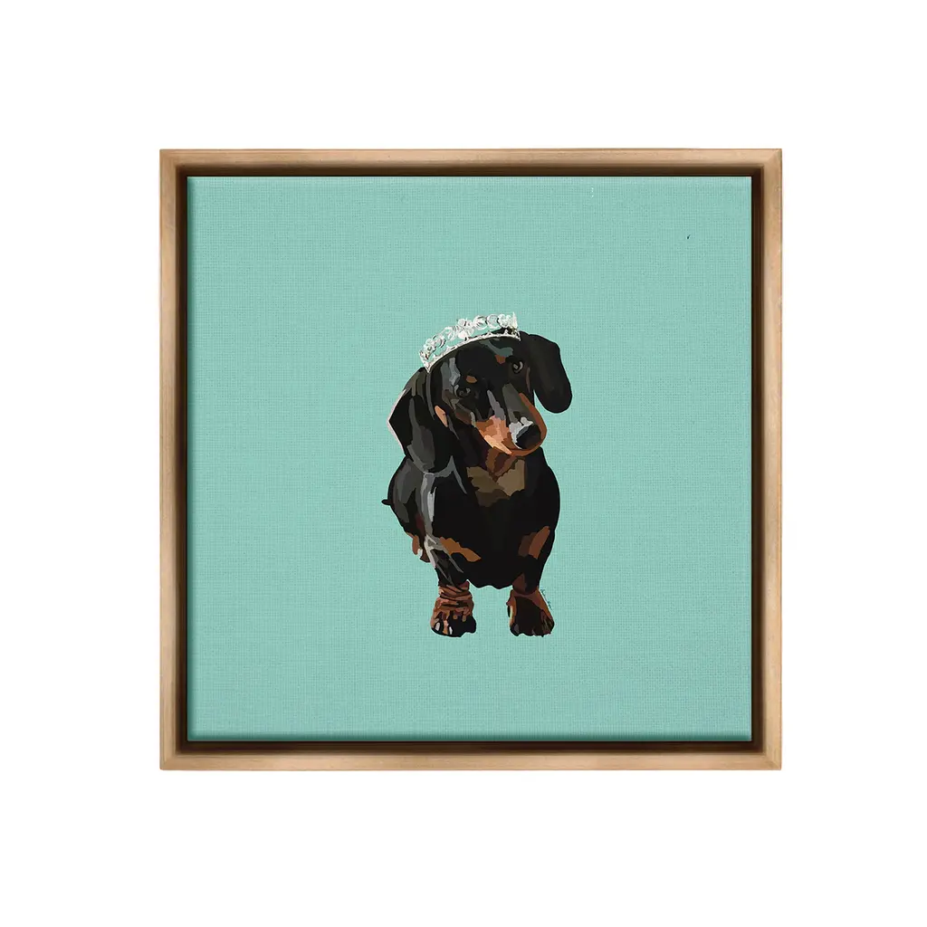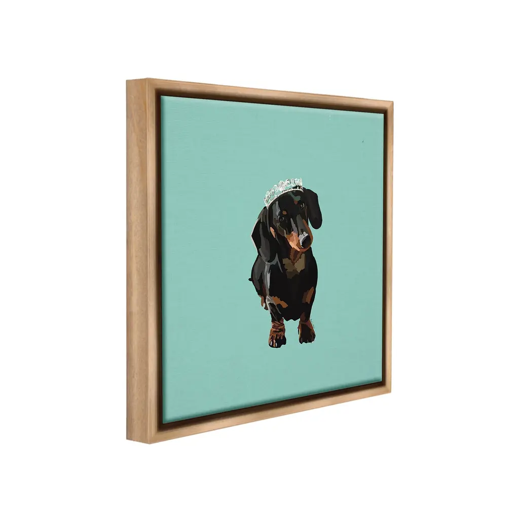Elevate your home or office to the next level with Stupell Framed Floating Canvas Wall Art. Our premium hand-stretched canvas is mounted securely into a sturdy lightweight frame. The museum-style gap between the wrapped canvas and the box frame gives the illusion of floating artwork. Stupell Wall Art is made in the USA.Features: Dimensions: 18 x 1.7 x 18 Frame, 17 x 1.5 x 17 Canvas ArtFloating Frame Canvas Products are available in sizes 18"x18" and 25"x25". All Floating Frame Canvas Products have a 1.7" Depth.Wall Art is Ready to Hang with Hardware Free Hanging. No Installation required. For Easy Set Up Lean or Layer Artwork on Shelf or Against Wall. Artwork is Permently Fixed into the Frame.Our elevated 1.7" Thick Floating Frame is the perfect complement to our canvas style Wall Art. We use only the highest quality inks in house with industry leading printing solutions. Canvas is hand stretched over a durable wood foundation and then mounted securly into a Modern Box Frame. Made in the USA.Artwork Relates To: Animal, Canine, Dog, Mammal, Pet, Puppy, Tiara, Crown, Princess, DachshundDesign by Amelia Noyes