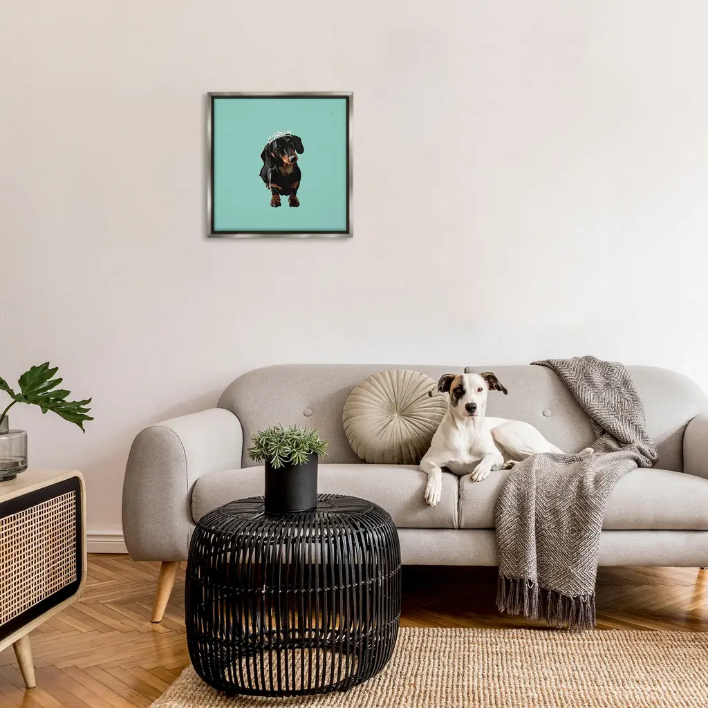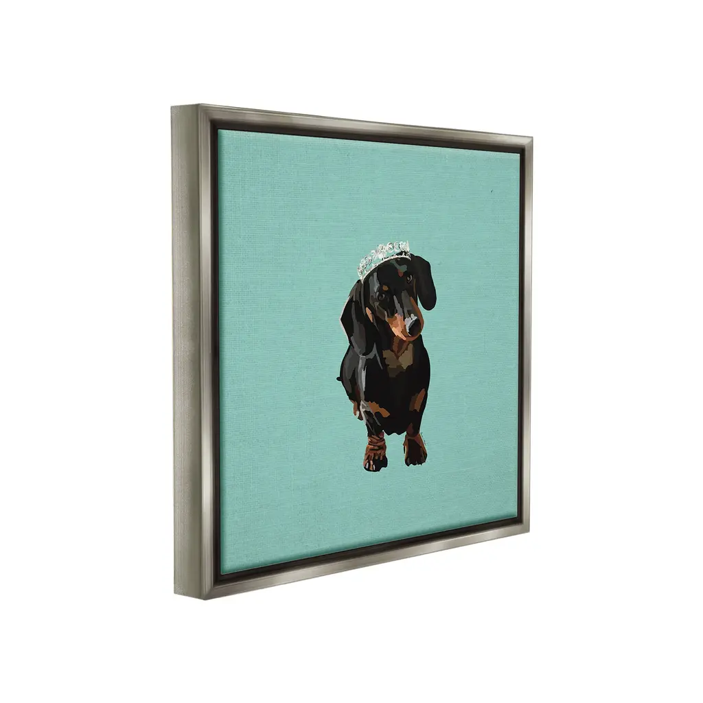 Elevate your home or office to the next level with Stupell Framed Floating Canvas Wall Art. Our premium hand-stretched canvas is mounted securely into a sturdy lightweight frame. The museum-style gap between the wrapped canvas and the box frame gives the illusion of floating artwork. Stupell Wall Art is made in the USA.Features: Dimensions: 18 x 1.7 x 18 Frame, 17 x 1.5 x 17 Canvas ArtFloating Frame Canvas Products are available in sizes 18"x18" and 25"x25". All Floating Frame Canvas Products have a 1.7" Depth.Wall Art is Ready to Hang with Hardware Free Hanging. No Installation required. For Easy Set Up Lean or Layer Artwork on Shelf or Against Wall. Artwork is Permently Fixed into the Frame.Our elevated 1.7" Thick Floating Frame is the perfect complement to our canvas style Wall Art. We use only the highest quality inks in house with industry leading printing solutions. Canvas is hand stretched over a durable wood foundation and then mounted securly into a Modern Box Frame. Made in the USA.Artwork Relates To: Animal, Canine, Dog, Mammal, Pet, Puppy, Tiara, Crown, Princess, DachshundDesign by Amelia Noyes