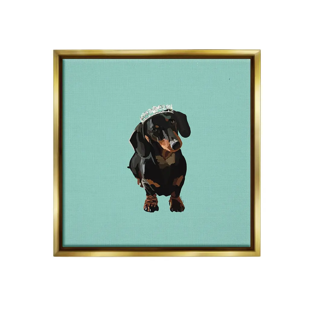 Add dimension to any room with our textured Framed Giclee Artwork. Our framed artwork is securely mounted into a 1.5-inch thick wood grain frame and ready to hang. Frames are available in three alluring styles: black, gray farmhouse and white. In addition, you should check out our oversized options if you want a statement piece. Stupell Wall Art is made in the USA.Features: Dimensions: 12 x 1.5 x 12 FramedFramed Giclee Product Sizes Include 12"x12", 17"x17", and 24"x24". Framed Giclee Products have a 1.5" Depth. Wall Art is Ready to Hang with Hardware Free Hanging. No installation required. For Easy Set Up Lean or Layer Artwork on Shelf or Against Wall.Our giclée prints are carefully mounted on a durable MDF backing, and then perfectly finished in a 1.5 inch thick woodgrain frame. Mounted frame colors include black, gray farmhouse and white. Made In USA.Artwork Relates To: Animal, Canine, Dog, Mammal, Pet, Puppy, Tiara, Crown, Princess, DachshundDesign by Amelia Noyes