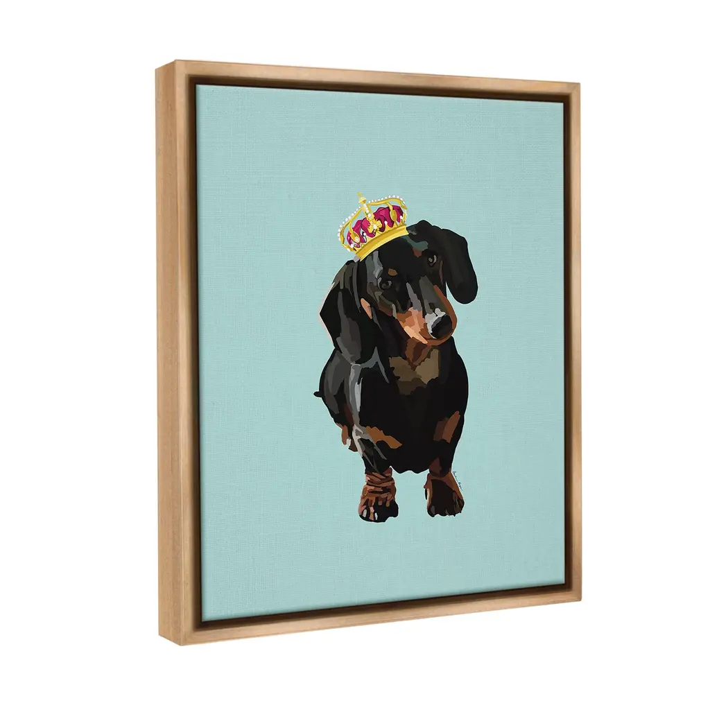 Elevate your home or office to the next level with Stupell Framed Floating Canvas Wall Art. Our premium hand-stretched canvas is mounted securely into a sturdy lightweight frame. The museum-style gap between the wrapped canvas and the box frame gives the illusion of floating artwork. Stupell Wall Art is made in the USA.Features: Dimensions: 17 x 1.7 x 21 Frame, 16 x 1.5 x 20 Canvas ArtFloating Frame Canvas Products are available in sizes 17"x21" and 25"x31". All Floating Frame Canvas Products have a 1.7" Depth.Wall Art is Ready to Hang with Hardware Free Hanging. No Installation required. For Easy Set Up Lean or Layer Artwork on Shelf or Against Wall. Artwork is Permently Fixed into the Frame.Our elevated 1.7" Thick Floating Frame is the perfect complement to our canvas style Wall Art. We use only the highest quality inks in house with industry leading printing solutions. Canvas is hand stretched over a durable wood foundation and then mounted securly into a Modern Box Frame. Made in the USA.Artwork Relates To: Animal, Canine, Dog, Mammal, Pet, Puppy, Tiara, Crown, Princess, DachshundDesign by Amelia Noyes