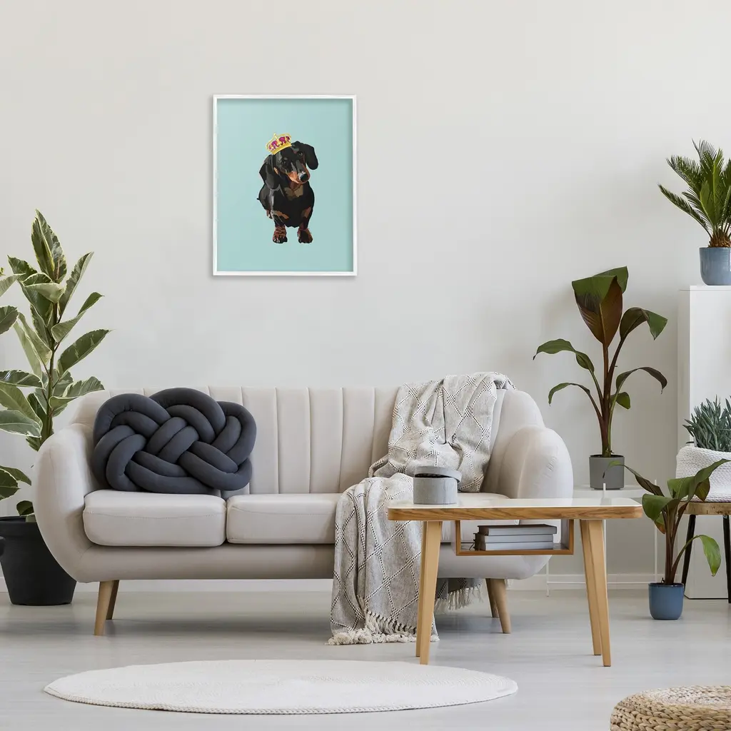 Add dimension to any room with our textured Framed Giclee Artwork. Our framed artwork is securely mounted into a 1.5-inch thick wood grain frame and ready to hang. Frames are available in three alluring styles: black, gray farmhouse and white. In addition, you should check out our oversized options if you want a statement piece. Stupell Wall Art is made in the USA.Features: Dimensions: 11 x 1.5 x 14 FramedFramed Giclee Products are available in the sizes 11"x14", 16"x20" or 24"x30". All Framed Giclee Products have a 1.5" Depth. Wall Art is Ready to Hang with Hardware Free Hanging. No installation required. For Easy Set Up Lean or Layer Artwork on Shelf or Against Wall.Our giclée prints are carefully mounted on a durable MDF backing, and then perfectly finished in a 1.5 inch thick woodgrain frame. Mounted frame colors include black, gray farmhouse and white. Made In USA.Artwork Relates To: Animal, Canine, Dog, Mammal, Pet, Puppy, Tiara, Crown, Princess, DachshundDesign by Amelia Noyes