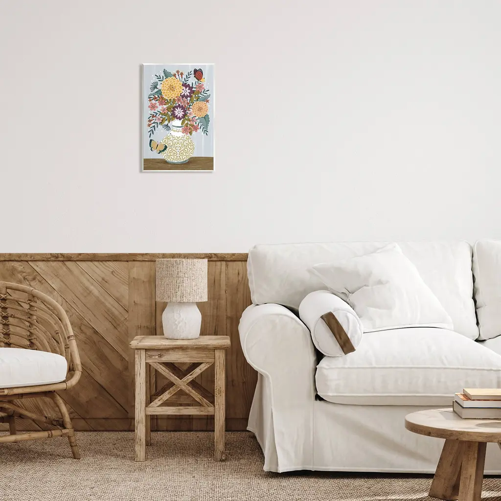 Our wall plaques start as high-quality lithograph prints mounted on durable 0.5-inch thick MDF wood. Each piece is hand finished and comes with a fresh layer of white foil on the sides to give it a crisp, clean look. Plaques arrive ready to hang without installation and come with removable plastic corners to keep them from damage in transit. Wall Art is made in the USA.Features: Dimensions: 10 x 0.5 x 15 InchesWall Plaque Sizes Include Standard: 10 x 0.5 x 15 Oversized: 13 x 0.5 x 19Wall Art is Ready to Hang with Hardware Free Hanging. No installation required. For Easy Set Up Lean or Layer Artwork on Shelf or Against Wall.All of our wall plaques start off as high quality lithograph prints that are then mounted on durable 0.5 inch thick MDF wood. Each piece is hand finished and comes with a fresh layer of foil on the sides to give it a crisp clean look. Made In USA.Artwork Relates To: Floral, Pattern, Pottery, Plant, Vase, Dahlia, Flower, Flower Bouquet, Animal, Insect, ButterflyDesign by Raquel Maciel