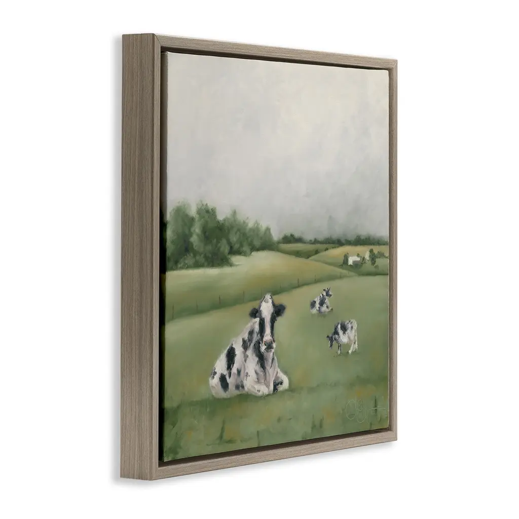 Elevate your home or office to the next level with Stupell Framed Floating Canvas Wall Art. Our premium hand-stretched canvas is mounted securely into a sturdy lightweight frame. The museum-style gap between the wrapped canvas and the box frame gives the illusion of floating artwork. Stupell Wall Art is made in the USA.Features: Dimensions: 18 x 1.7 x 18 Frame, 17 x 1.5 x 17 Canvas ArtFloating Frame Canvas Products are available in sizes 18"x18" and 25"x25". All Floating Frame Canvas Products have a 1.7" Depth.Wall Art is Ready to Hang with Hardware Free Hanging. No Installation required. For Easy Set Up Lean or Layer Artwork on Shelf or Against Wall. Artwork is Permently Fixed into the Frame.Our elevated 1.7" Thick Floating Frame is the perfect complement to our canvas style Wall Art. We use only the highest quality inks in house with industry leading printing solutions. Canvas is hand stretched over a durable wood foundation and then mounted securly into a Modern Box Frame. Made in the USA.Artwork Relates To: Country, Farmhouse, Cattle, Cow, Landscape, TraditionalDesign by Hollihocks Art