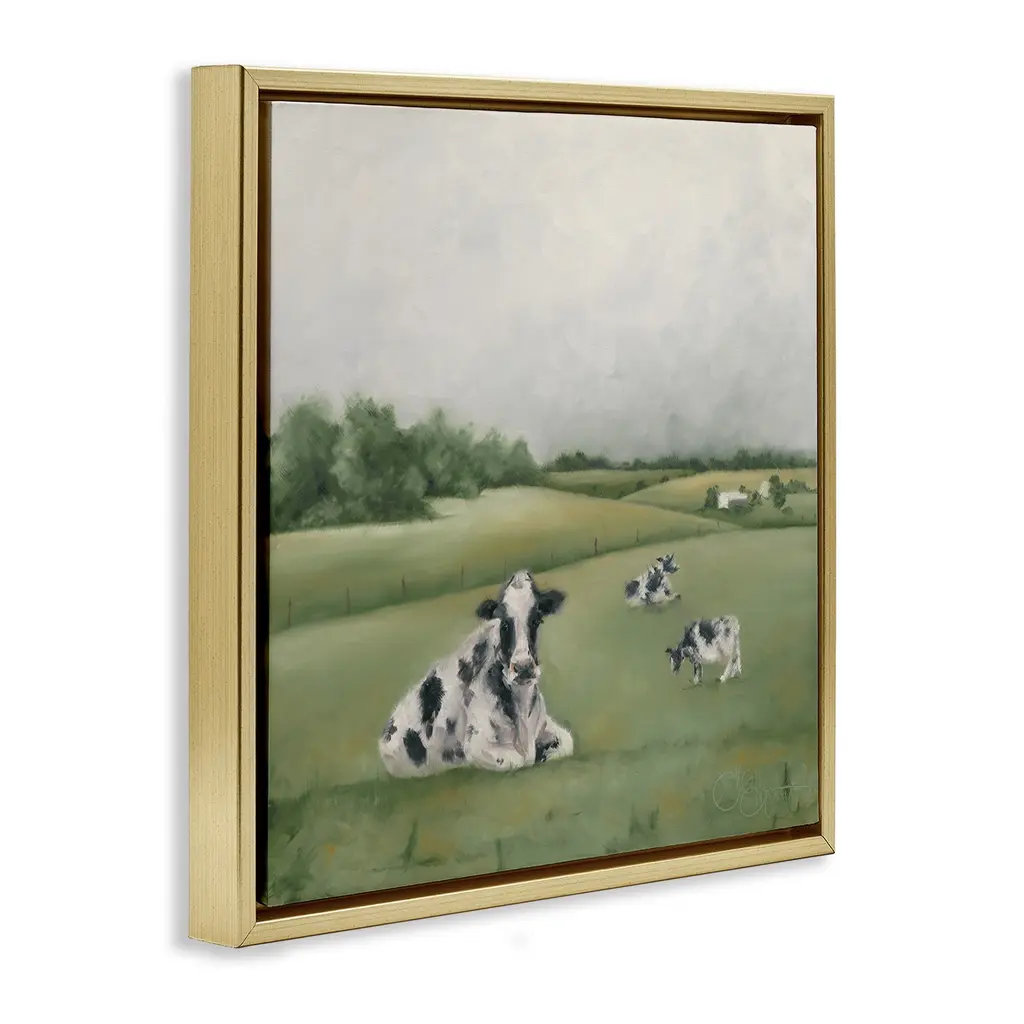 Elevate your home or office to the next level with Stupell Framed Floating Canvas Wall Art. Our premium hand-stretched canvas is mounted securely into a sturdy lightweight frame. The museum-style gap between the wrapped canvas and the box frame gives the illusion of floating artwork. Stupell Wall Art is made in the USA.Features: Dimensions: 18 x 1.7 x 18 Frame, 17 x 1.5 x 17 Canvas ArtFloating Frame Canvas Products are available in sizes 18"x18" and 25"x25". All Floating Frame Canvas Products have a 1.7" Depth.Wall Art is Ready to Hang with Hardware Free Hanging. No Installation required. For Easy Set Up Lean or Layer Artwork on Shelf or Against Wall. Artwork is Permently Fixed into the Frame.Our elevated 1.7" Thick Floating Frame is the perfect complement to our canvas style Wall Art. We use only the highest quality inks in house with industry leading printing solutions. Canvas is hand stretched over a durable wood foundation and then mounted securly into a Modern Box Frame. Made in the USA.Artwork Relates To: Country, Farmhouse, Cattle, Cow, Landscape, TraditionalDesign by Hollihocks Art