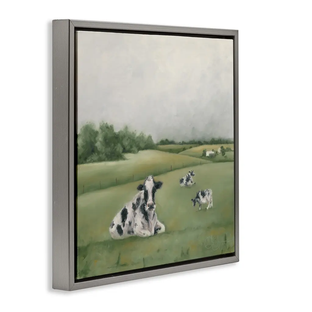 Stupell Dairy Cows Grazing In Green Field Framed Floater Canvas Wall Art Design By Hollihocks Art - 18 X 18 - Grey