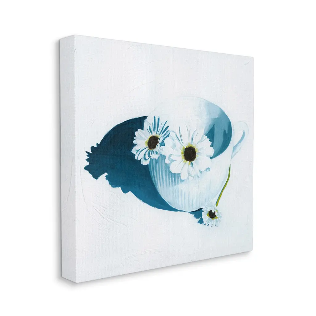 We create our stretched canvas to the highest standards. Using only the highest quality inks and canvas on Mimaki printers, we hand-cut and stretch each piece over a 1.5-inch thick wooden frame for hanging. As a result, the art comes ready to hang on the sturdy ledge with no installation required. Stupell Wall Art is made in the USA.Features: Dimensions: 17 x 1.5 x 17 InchesStretched Canvas Sizes Include Standard: 17 x 1.5 x 17 Large: 24 x 1.5 x 24 X-Large: 30 x 1.5 x 30 Oversized: 36 x 1.5 x 36Wall Art is Ready to Hang with Hardware Free Hanging. No installation required. For Easy Set Up Lean or Layer Artwork on Shelf or Against Wall.Our stretched canvas is created with the highest standards. We use only the highest quality inks and canvas on our in house Mimaki printers, and then hand cut and stretch each piece over a 1.5 inch thick wooden frame for hanging. Made In USA.Artwork Relates To: Daisy, Flower, Plant, Anemone, Painting, Cup, Petal, Teacup, PaintingDesign by Grace Popp