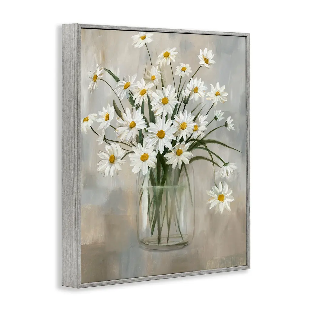 Stupell Daisy Bloom Bouquet Potted Flowers Abstract Pattern Framed Wall Art - Brown - 24 X 30 - Grey