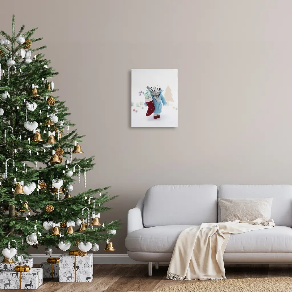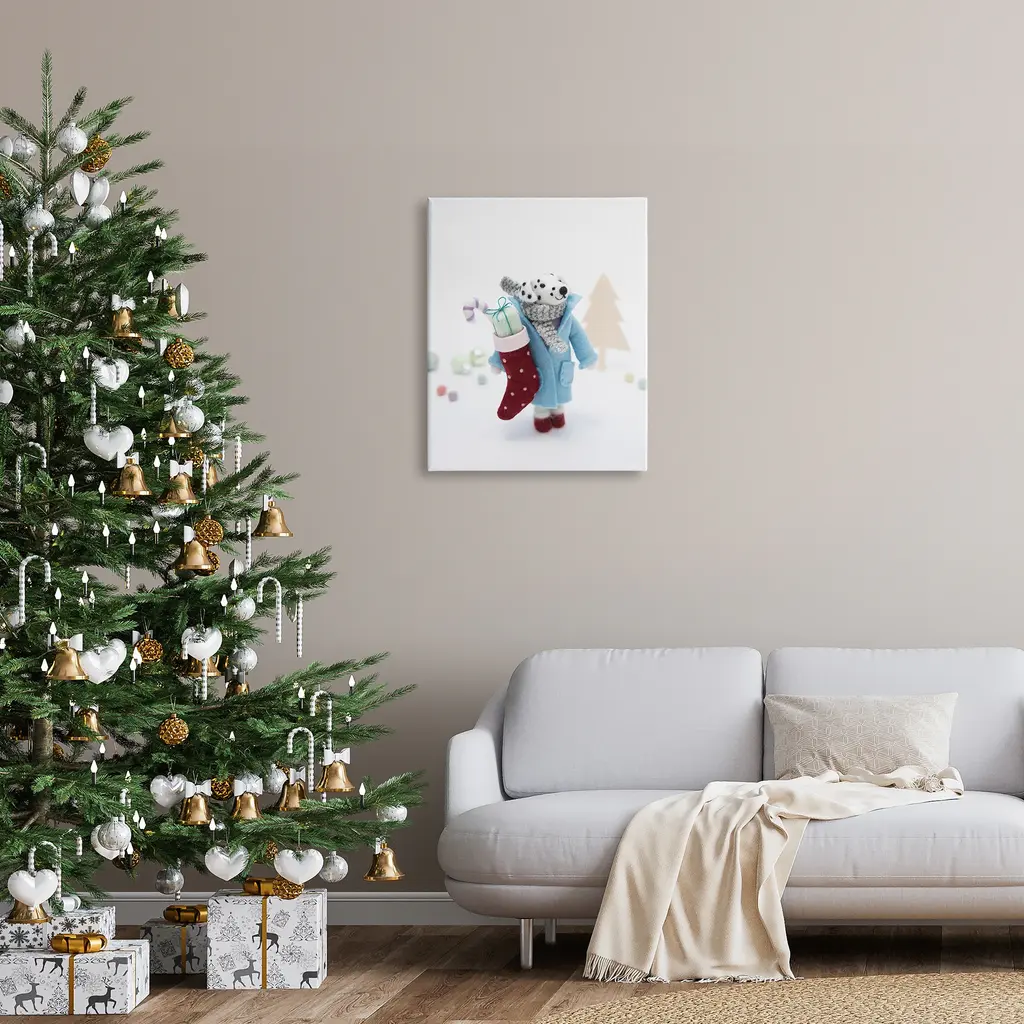 We create our stretched canvas to the highest standards. Using only the highest quality inks and canvas on Mimaki printers, we hand-cut and stretch each piece over a 1.5-inch thick wooden frame for hanging. As a result, the art comes ready to hang on the sturdy ledge with no installation required. Stupell Wall Art is made in the USA.Features: Dimensions: 16 x 1.5 x 20 InchesStretched Canvas Sizes Include Standard: 16 x 1.5 x 20 Large: 20 x 1.5 x 30 X-Large: 30 x 1.5 x 40 Oversized: 36 x 1.5 x 48Wall Art is Ready to Hang - No Installation or Hardware Needed. For Easy Set Up Lean or Layer Artwork on Shelf or Against Wall.Our stretched canvas is created with the highest standards. We use only the highest quality inks and canvas on our in house Mimaki printers, and then hand cut and stretch each piece over a 1.5 inch thick wooden frame for hanging. Made In USA.Artwork Relates To: Christmas, Winter, Nature, Snow, Christmas Stocking, Gift, StockingDesign by Lemon & Sugar