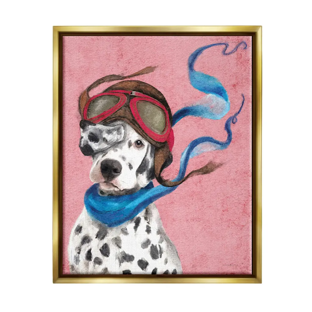 Elevate your home or office to the next level with Stupell Framed Floating Canvas Wall Art. Our premium hand-stretched canvas is mounted securely into a sturdy lightweight frame. The museum-style gap between the wrapped canvas and the box frame gives the illusion of floating artwork. Stupell Wall Art is made in the USA.Features: Dimensions: 17 x 1.7 x 21 Frame, 16 x 1.5 x 20 Canvas ArtFloating Frame Sizes Include Standard: 17 x 1.7 x 21 Oversized: 25 x 1.7 x 31Wall Art is Ready to Hang with Hardware Free Hanging. No installation required. For Easy Set Up Lean or Layer Artwork on Shelf or Against Wall.Our elevated 1.7" Thick Floating Frame is the perfect complement to our canvas style Wall Art. We use only the highest quality inks in house with industry leading printing solutions. Canvas is hand stretched over a durable wood foundation and then mounted securly into a Modern Box Frame. Made in the USA.Artwork Relates To: Dog, Animal, Painting, Pilot, DalmatianDesign by Kamdon Kreations