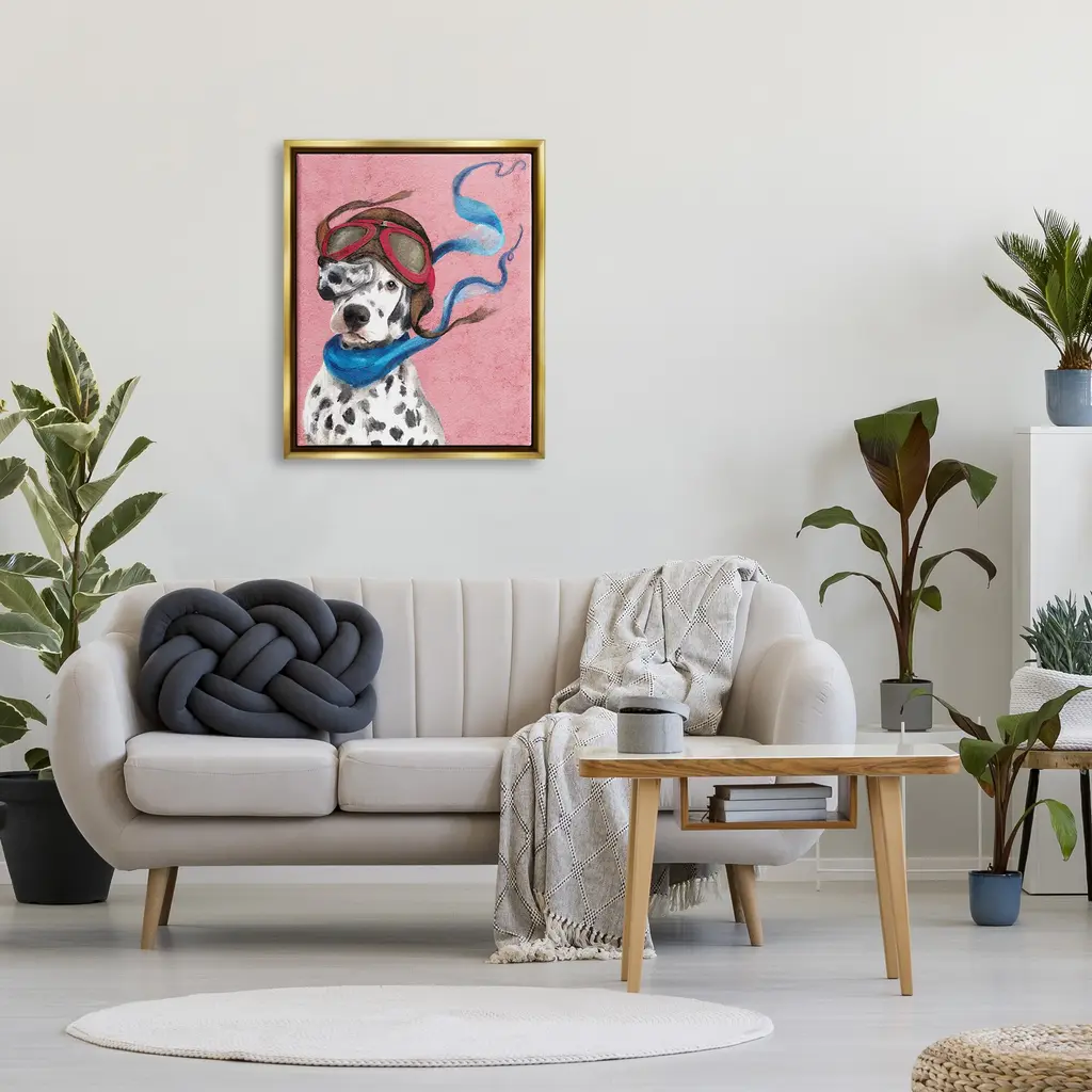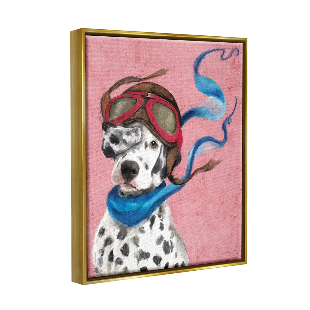 Stupell Dalmatian Pilot Painting Framed Floater Canvas Wall Art Design By Kamdon Kreations - 25 X 31 - Gold