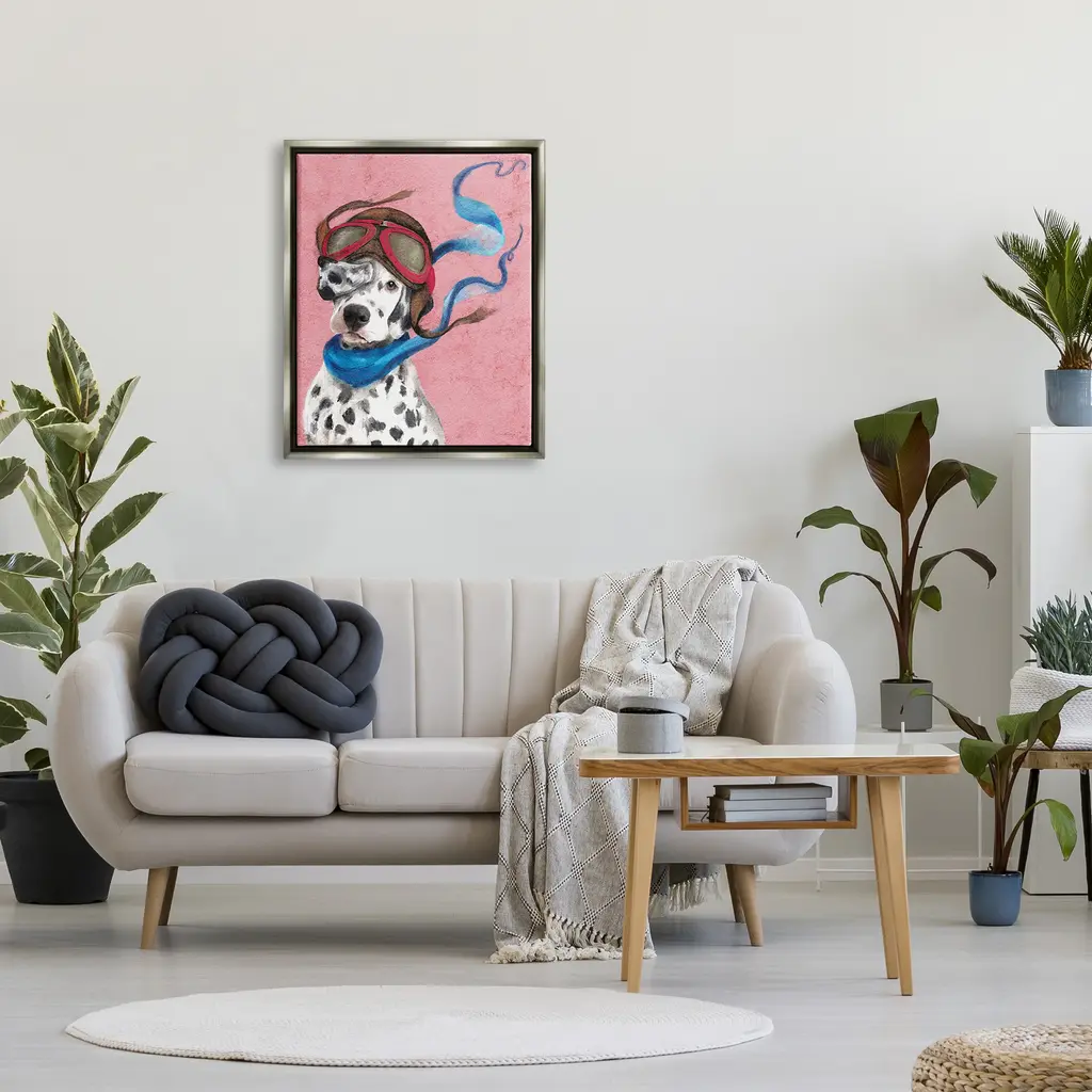 Elevate your home or office to the next level with Stupell Framed Floating Canvas Wall Art. Our premium hand-stretched canvas is mounted securely into a sturdy lightweight frame. The museum-style gap between the wrapped canvas and the box frame gives the illusion of floating artwork. Stupell Wall Art is made in the USA.Features: Dimensions: 17 x 1.7 x 21 Frame, 16 x 1.5 x 20 Canvas ArtFloating Frame Sizes Include Standard: 17 x 1.7 x 21 Oversized: 25 x 1.7 x 31Wall Art is Ready to Hang with Hardware Free Hanging. No installation required. For Easy Set Up Lean or Layer Artwork on Shelf or Against Wall.Our elevated 1.7" Thick Floating Frame is the perfect complement to our canvas style Wall Art. We use only the highest quality inks in house with industry leading printing solutions. Canvas is hand stretched over a durable wood foundation and then mounted securly into a Modern Box Frame. Made in the USA.Artwork Relates To: Dog, Animal, Painting, Pilot, DalmatianDesign by Kamdon Kreations