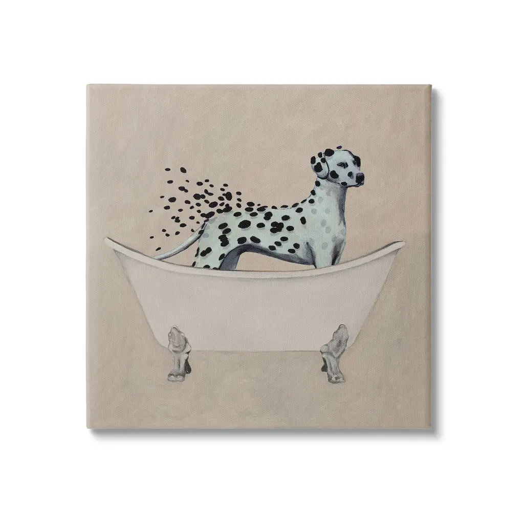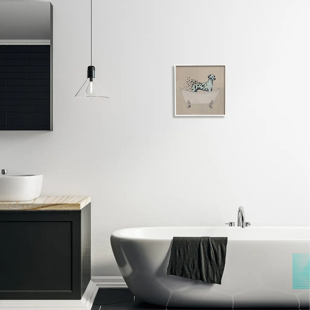 Add dimension to any room with our textured Framed Giclee Artwork. Our framed artwork is securely mounted into a 1.5-inch thick wood grain frame and ready to hang. Frames are available in three alluring styles: black, gray farmhouse and white. In addition, you should check out our oversized options if you want a statement piece. Stupell Wall Art is made in the USA.Features: Dimensions: 12 x 1.5 x 12 FramedFramed Giclee Sizes Include Standard: 12 x 1.5 x 12 Large: 17 x 1.5 x 17 Oversized: 24 x 1.5 x 24Wall Art is Ready to Hang - No Installation or Hardware Needed. For Easy Set Up Lean or Layer Artwork on Shelf or Against Wall.Our giclée prints are carefully mounted on a durable MDF backing, and then perfectly finished in a 1.5 inch thick woodgrain frame. Mounted frame colors include black, gray farmhouse and white. Made In USA.Artwork Relates To: Animal, Mammal, Wildlife, Bathroom, Dog, DalmatianDesign by Coco de Paris