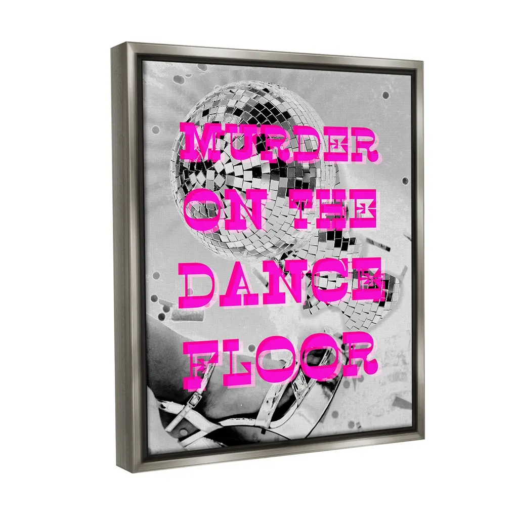 Elevate your home or office to the next level with Stupell Framed Floating Canvas Wall Art. Our premium hand-stretched canvas is mounted securely into a sturdy lightweight frame. The museum-style gap between the wrapped canvas and the box frame gives the illusion of floating artwork. Stupell Wall Art is made in the USA.Features: Dimensions: 17 x 1.7 x 21 Frame, 16 x 1.5 x 20 Canvas ArtFloating Frame Canvas Products are available in sizes 17"x21" and 25"x31". All Floating Frame Canvas Products have a 1.7" Depth.Wall Art is Ready to Hang with Hardware Free Hanging. No Installation required. For Easy Set Up Lean or Layer Artwork on Shelf or Against Wall. Artwork is Permently Fixed into the Frame.Our elevated 1.7" Thick Floating Frame is the perfect complement to our canvas style Wall Art. We use only the highest quality inks in house with industry leading printing solutions. Canvas is hand stretched over a durable wood foundation and then mounted securly into a Modern Box Frame. Made in the USA.Artwork Relates To: Dance, Music, Disco, Pattern, Abstract, Shape, Modern, Glam, Phrase, Murder on the Dance FloorDesign by Lil' Rue
