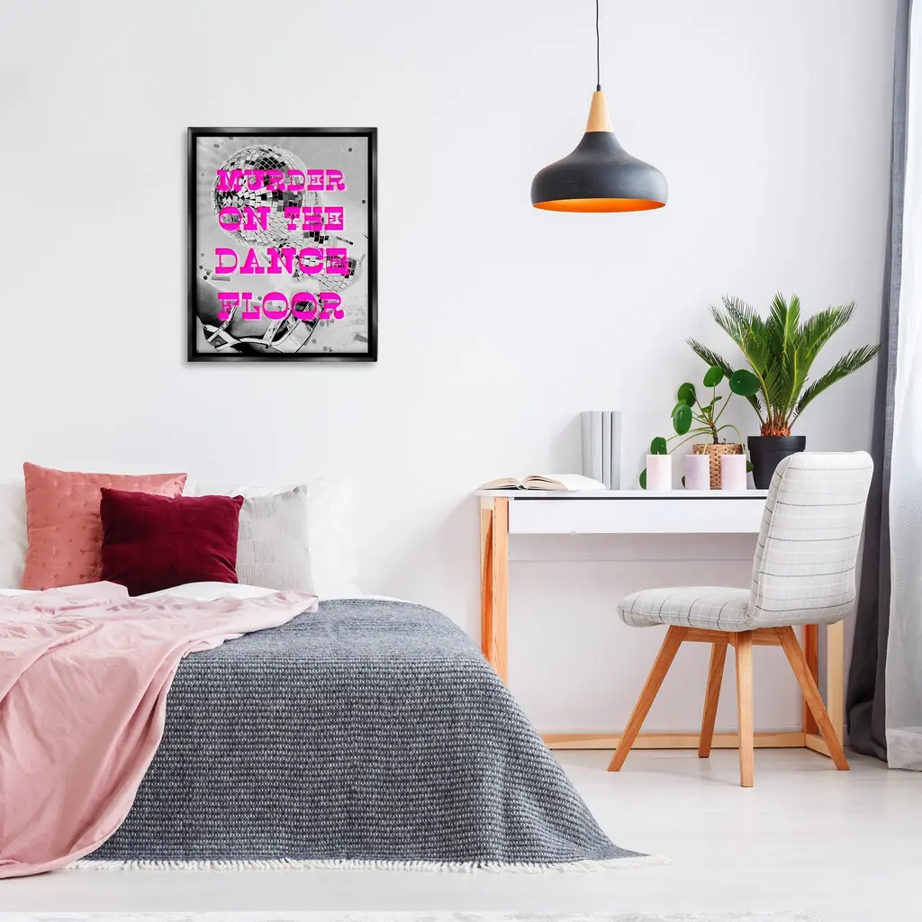 Elevate your home or office to the next level with Stupell Framed Floating Canvas Wall Art. Our premium hand-stretched canvas is mounted securely into a sturdy lightweight frame. The museum-style gap between the wrapped canvas and the box frame gives the illusion of floating artwork. Stupell Wall Art is made in the USA.Features: Dimensions: 17 x 1.7 x 21 Frame, 16 x 1.5 x 20 Canvas ArtFloating Frame Canvas Products are available in sizes 17"x21" and 25"x31". All Floating Frame Canvas Products have a 1.7" Depth.Wall Art is Ready to Hang with Hardware Free Hanging. No Installation required. For Easy Set Up Lean or Layer Artwork on Shelf or Against Wall. Artwork is Permently Fixed into the Frame.Our elevated 1.7" Thick Floating Frame is the perfect complement to our canvas style Wall Art. We use only the highest quality inks in house with industry leading printing solutions. Canvas is hand stretched over a durable wood foundation and then mounted securly into a Modern Box Frame. Made in the USA.Artwork Relates To: Dance, Music, Disco, Pattern, Abstract, Shape, Modern, Glam, Phrase, Murder on the Dance FloorDesign by Lil' Rue
