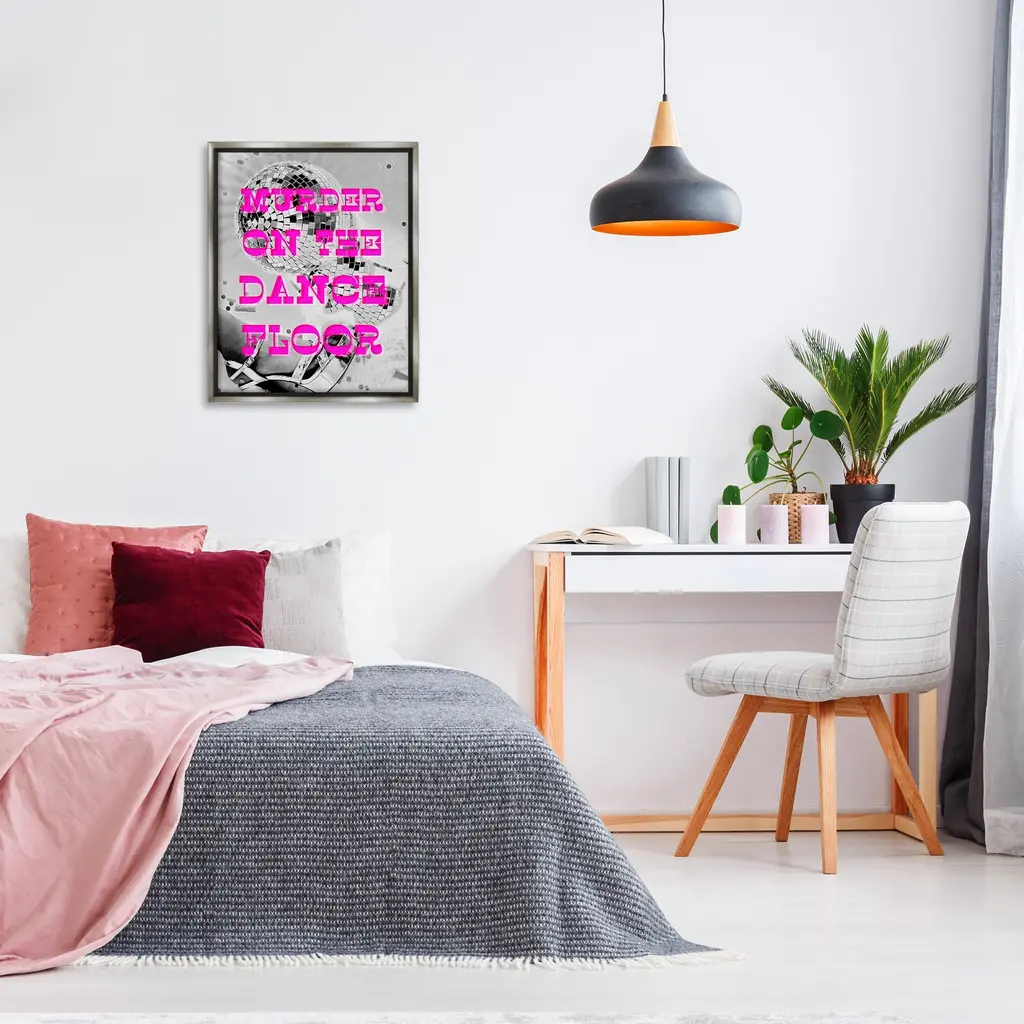 Elevate your home or office to the next level with Stupell Framed Floating Canvas Wall Art. Our premium hand-stretched canvas is mounted securely into a sturdy lightweight frame. The museum-style gap between the wrapped canvas and the box frame gives the illusion of floating artwork. Stupell Wall Art is made in the USA.Features: Dimensions: 17 x 1.7 x 21 Frame, 16 x 1.5 x 20 Canvas ArtFloating Frame Canvas Products are available in sizes 17"x21" and 25"x31". All Floating Frame Canvas Products have a 1.7" Depth.Wall Art is Ready to Hang with Hardware Free Hanging. No Installation required. For Easy Set Up Lean or Layer Artwork on Shelf or Against Wall. Artwork is Permently Fixed into the Frame.Our elevated 1.7" Thick Floating Frame is the perfect complement to our canvas style Wall Art. We use only the highest quality inks in house with industry leading printing solutions. Canvas is hand stretched over a durable wood foundation and then mounted securly into a Modern Box Frame. Made in the USA.Artwork Relates To: Dance, Music, Disco, Pattern, Abstract, Shape, Modern, Glam, Phrase, Murder on the Dance FloorDesign by Lil' Rue