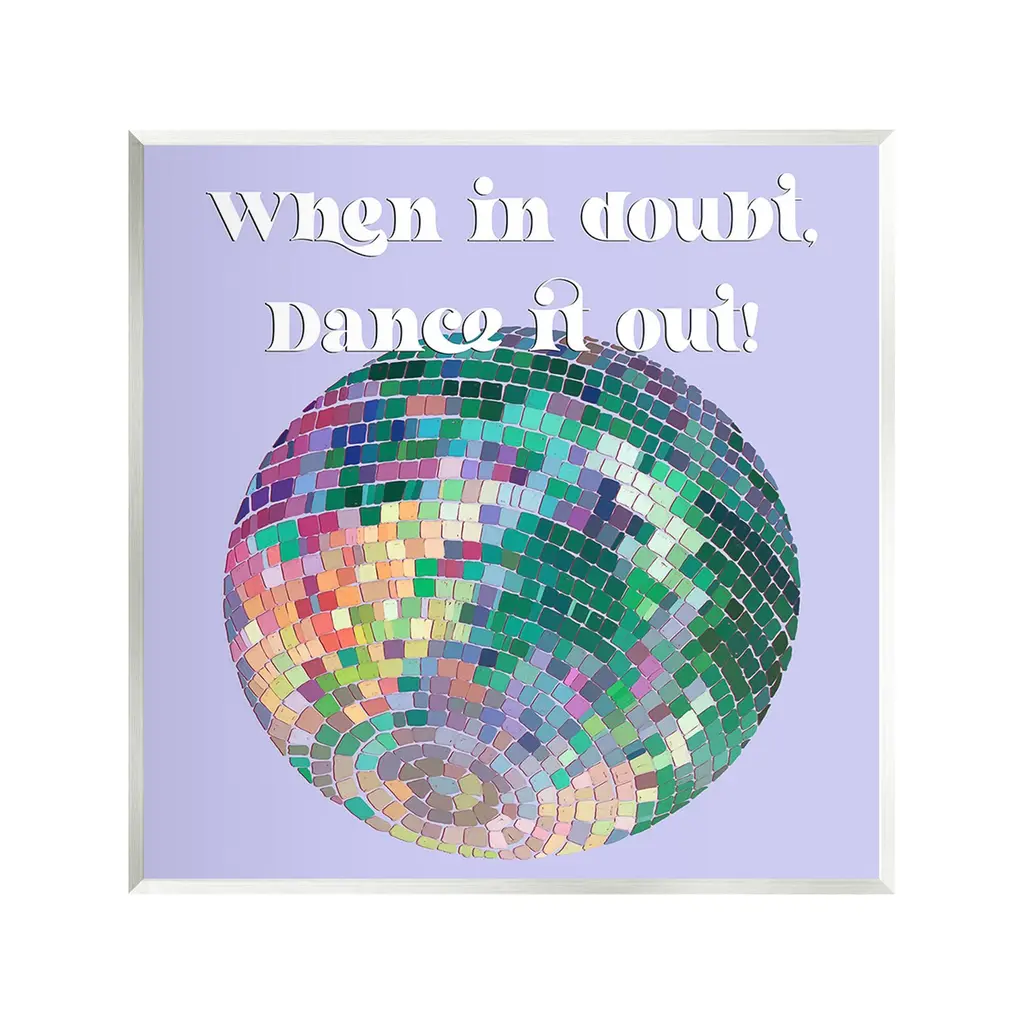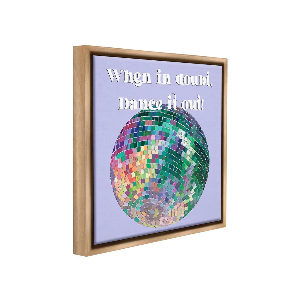 Elevate your home or office to the next level with Stupell Framed Floating Canvas Wall Art. Our premium hand-stretched canvas is mounted securely into a sturdy lightweight frame. The museum-style gap between the wrapped canvas and the box frame gives the illusion of floating artwork. Stupell Wall Art is made in the USA.Features: Dimensions: 18 x 1.7 x 18 Frame, 17 x 1.5 x 17 Canvas ArtFloating Frame Canvas Products are available in sizes 18"x18" and 25"x25". All Floating Frame Canvas Products have a 1.7" Depth.Wall Art is Ready to Hang with Hardware Free Hanging. No Installation required. For Easy Set Up Lean or Layer Artwork on Shelf or Against Wall. Artwork is Permently Fixed into the Frame.Our elevated 1.7" Thick Floating Frame is the perfect complement to our canvas style Wall Art. We use only the highest quality inks in house with industry leading printing solutions. Canvas is hand stretched over a durable wood foundation and then mounted securly into a Modern Box Frame. Made in the USA.Artwork Relates To: Dance, Music, Disco, Pattern, Phrase, Glam, When in Doubt, Dance It OutDesign by Regina Moore