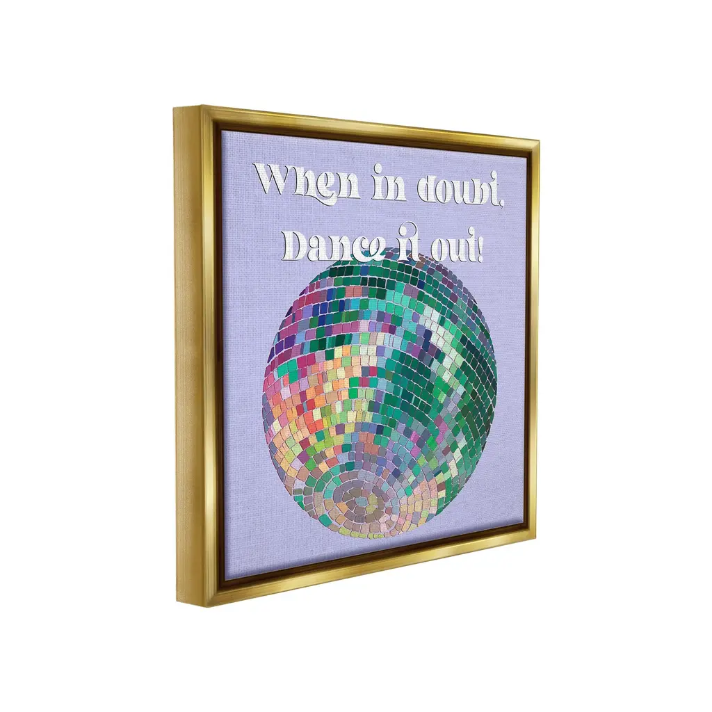 Elevate your home or office to the next level with Stupell Framed Floating Canvas Wall Art. Our premium hand-stretched canvas is mounted securely into a sturdy lightweight frame. The museum-style gap between the wrapped canvas and the box frame gives the illusion of floating artwork. Stupell Wall Art is made in the USA.Features: Dimensions: 18 x 1.7 x 18 Frame, 17 x 1.5 x 17 Canvas ArtFloating Frame Canvas Products are available in sizes 18"x18" and 25"x25". All Floating Frame Canvas Products have a 1.7" Depth.Wall Art is Ready to Hang with Hardware Free Hanging. No Installation required. For Easy Set Up Lean or Layer Artwork on Shelf or Against Wall. Artwork is Permently Fixed into the Frame.Our elevated 1.7" Thick Floating Frame is the perfect complement to our canvas style Wall Art. We use only the highest quality inks in house with industry leading printing solutions. Canvas is hand stretched over a durable wood foundation and then mounted securly into a Modern Box Frame. Made in the USA.Artwork Relates To: Dance, Music, Disco, Pattern, Phrase, Glam, When in Doubt, Dance It OutDesign by Regina Moore