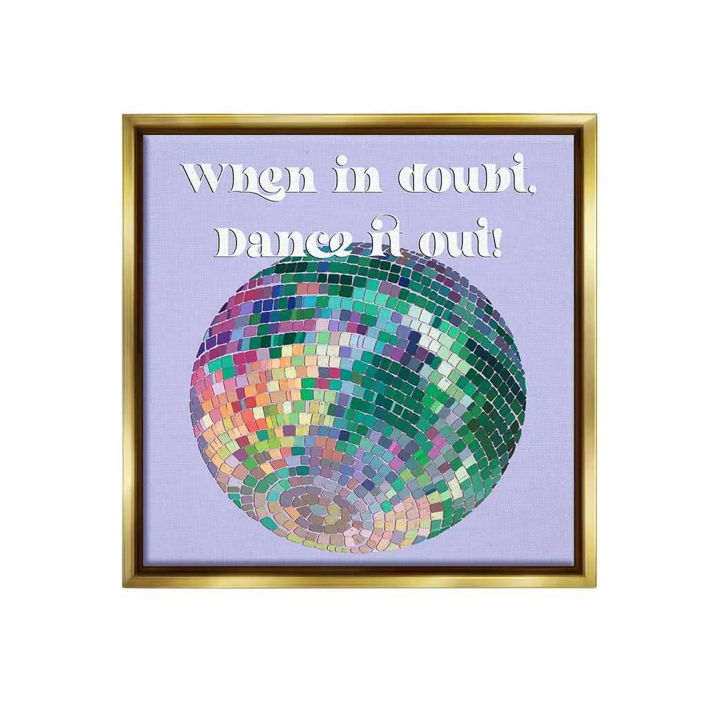 Add dimension to any room with our textured Framed Giclee Artwork. Our framed artwork is securely mounted into a 1.5-inch thick wood grain frame and ready to hang. Frames are available in three alluring styles: black, gray farmhouse and white. In addition, you should check out our oversized options if you want a statement piece. Stupell Wall Art is made in the USA.Features: Dimensions: 12 x 1.5 x 12 FramedFramed Giclee Product Sizes Include 12"x12", 17"x17", and 24"x24". Framed Giclee Products have a 1.5" Depth. Wall Art is Ready to Hang with Hardware Free Hanging. No installation required. For Easy Set Up Lean or Layer Artwork on Shelf or Against Wall.Our giclée prints are carefully mounted on a durable MDF backing, and then perfectly finished in a 1.5 inch thick woodgrain frame. Mounted frame colors include black, gray farmhouse and white. Made In USA.Artwork Relates To: Dance, Music, Disco, Pattern, Phrase, Glam, When in Doubt, Dance It OutDesign by Regina Moore