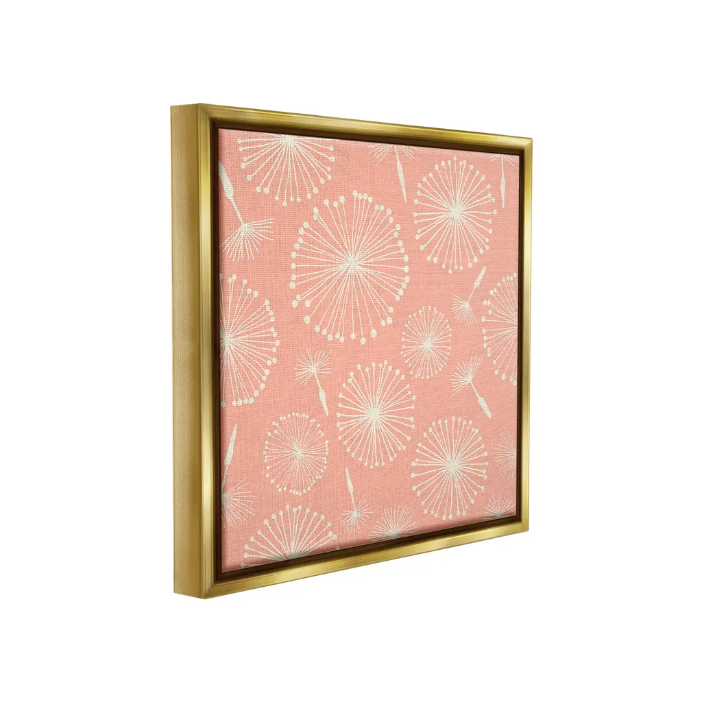 Elevate your home or office to the next level with Stupell Framed Floating Canvas Wall Art. Our premium hand-stretched canvas is mounted securely into a sturdy lightweight frame. The museum-style gap between the wrapped canvas and the box frame gives the illusion of floating artwork. Stupell Wall Art is made in the USA.Features: Dimensions: 18 x 1.7 x 18 Frame, 17 x 1.5 x 17 Canvas ArtFloating Frame Canvas Products are available in sizes 18"x18" and 25"x25". All Floating Frame Canvas Products have a 1.7" Depth.Wall Art is Ready to Hang with Hardware Free Hanging. No Installation required. For Easy Set Up Lean or Layer Artwork on Shelf or Against Wall. Artwork is Permently Fixed into the Frame.Our elevated 1.7" Thick Floating Frame is the perfect complement to our canvas style Wall Art. We use only the highest quality inks in house with industry leading printing solutions. Canvas is hand stretched over a durable wood foundation and then mounted securly into a Modern Box Frame. Made in the USA.Artwork Relates To: Pattern, Floral, Flower, Plant, Modern, Minimal, DandelionDesign by Carrie Cantwell