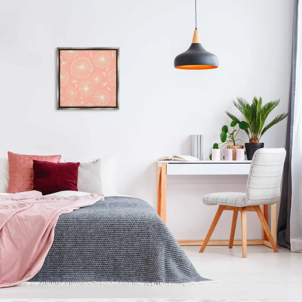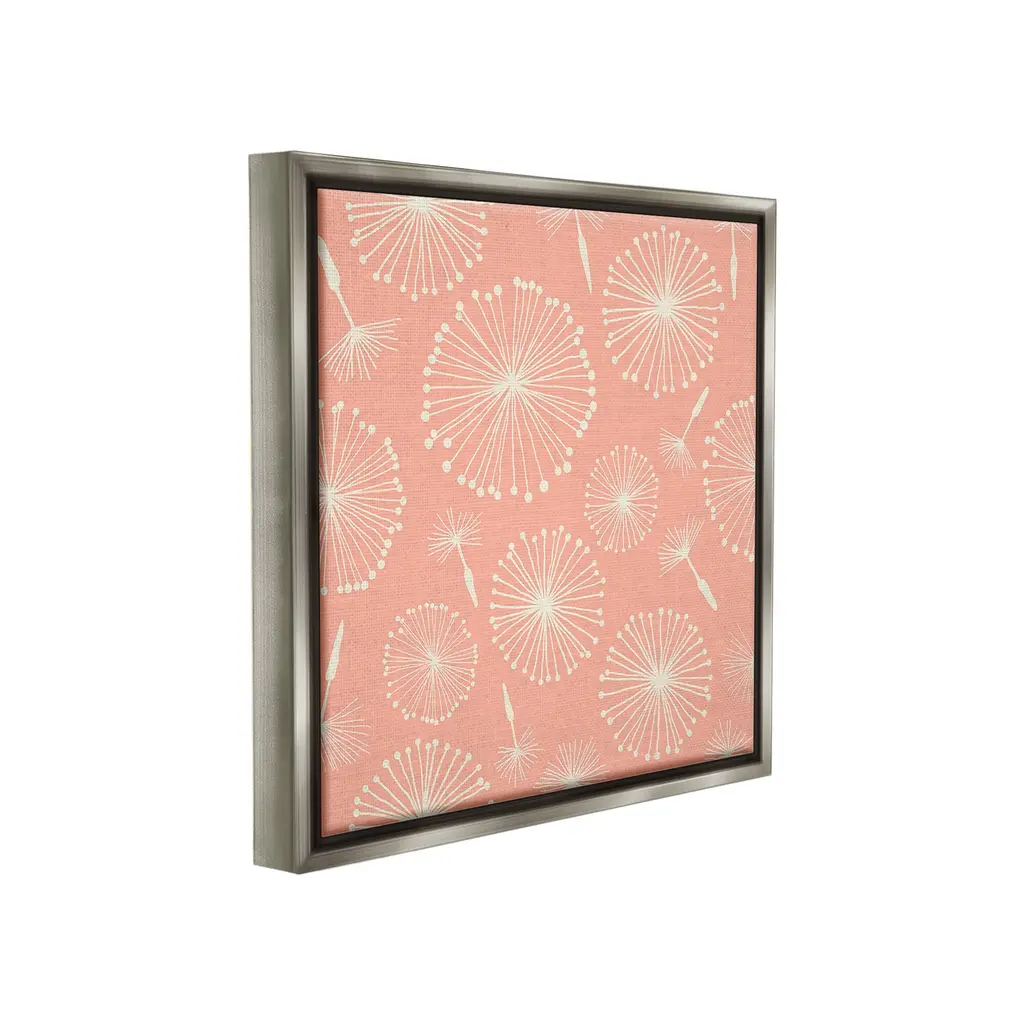 Elevate your home or office to the next level with Stupell Framed Floating Canvas Wall Art. Our premium hand-stretched canvas is mounted securely into a sturdy lightweight frame. The museum-style gap between the wrapped canvas and the box frame gives the illusion of floating artwork. Stupell Wall Art is made in the USA.Features: Dimensions: 18 x 1.7 x 18 Frame, 17 x 1.5 x 17 Canvas ArtFloating Frame Canvas Products are available in sizes 18"x18" and 25"x25". All Floating Frame Canvas Products have a 1.7" Depth.Wall Art is Ready to Hang with Hardware Free Hanging. No Installation required. For Easy Set Up Lean or Layer Artwork on Shelf or Against Wall. Artwork is Permently Fixed into the Frame.Our elevated 1.7" Thick Floating Frame is the perfect complement to our canvas style Wall Art. We use only the highest quality inks in house with industry leading printing solutions. Canvas is hand stretched over a durable wood foundation and then mounted securly into a Modern Box Frame. Made in the USA.Artwork Relates To: Pattern, Floral, Flower, Plant, Modern, Minimal, DandelionDesign by Carrie Cantwell